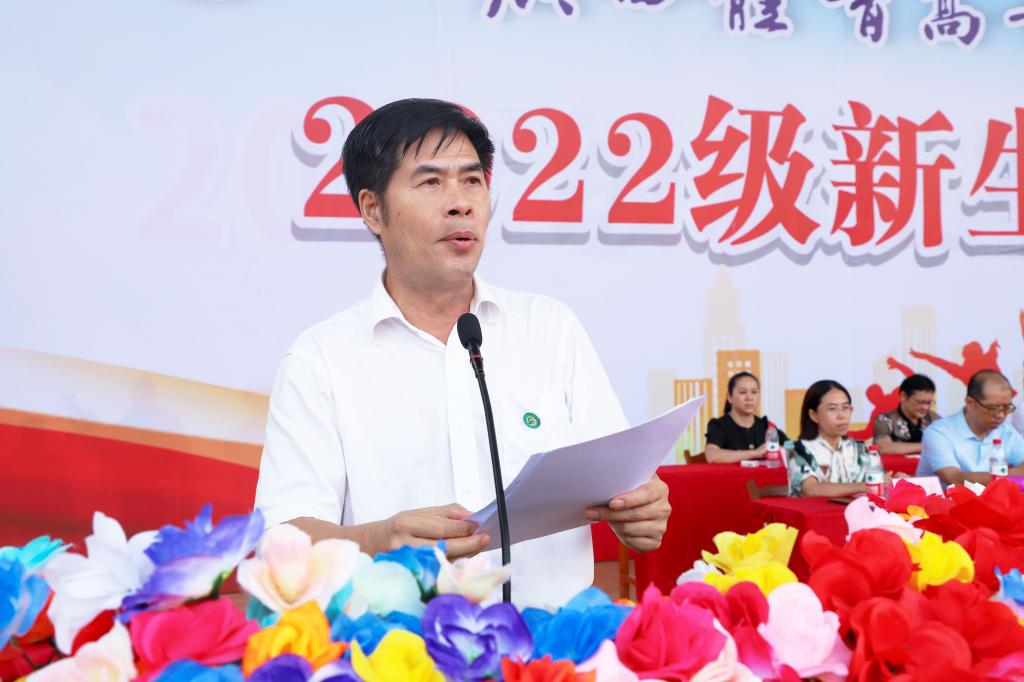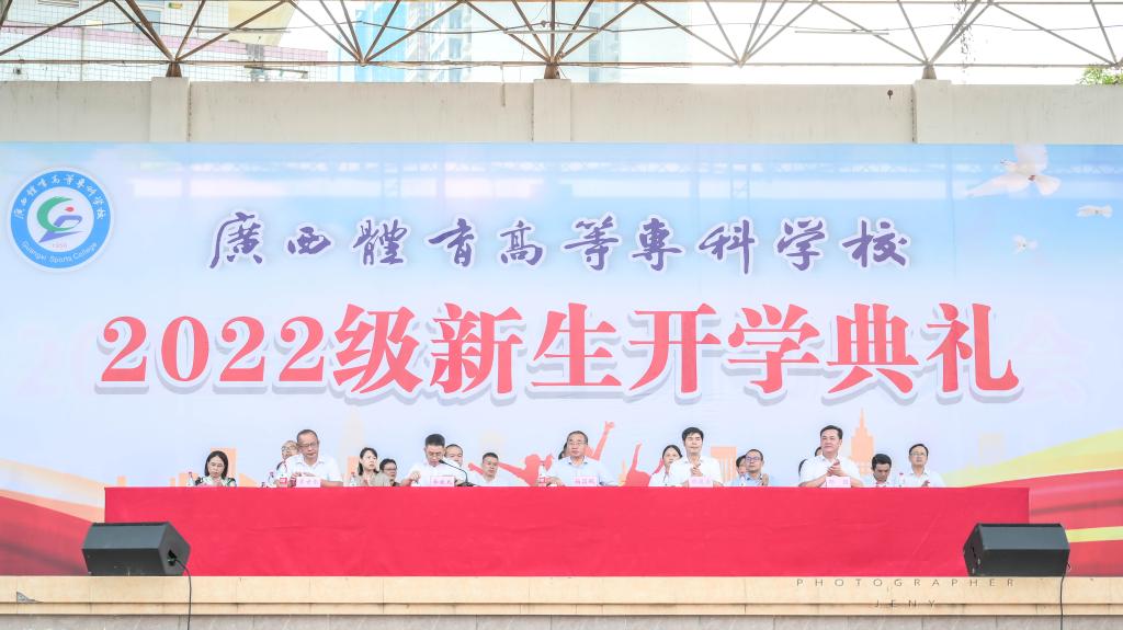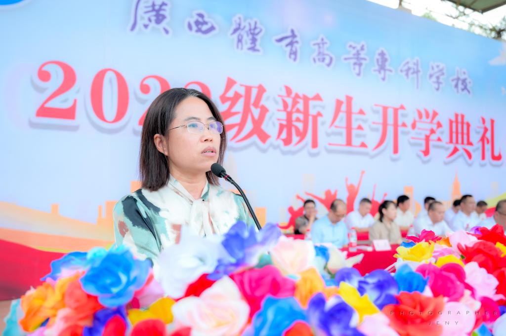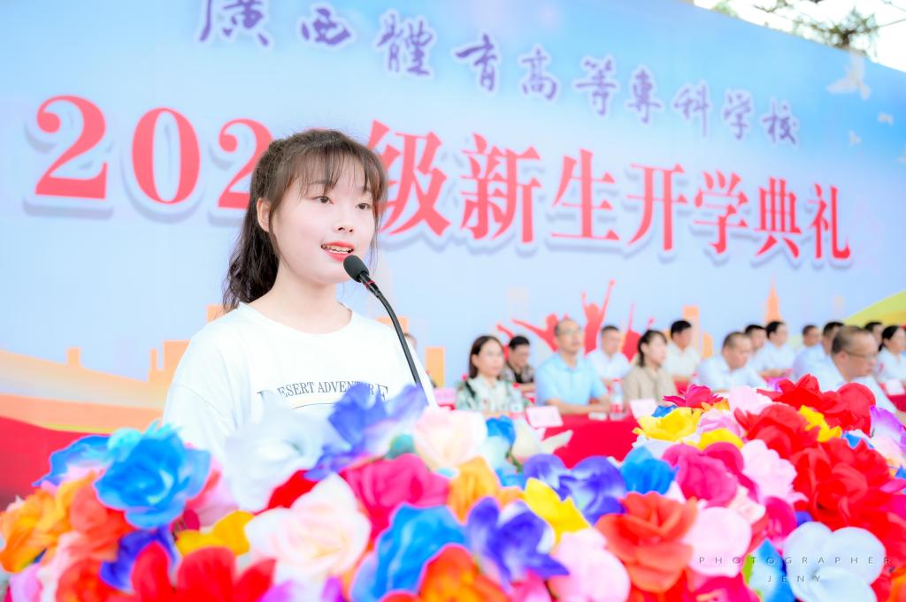 胡英清在致辞中提到,青年的前途和命运,从来都同时代紧密相连,爱体育(中国)在新发展阶段面临新发展机遇,你们将是推进爱体育(中国)改革发展的新生力量。他围绕“新生力量”,向2022级新生提出了三点希望。一是要扎根铸魂,心怀祖国。爱国奋斗是青年最亮丽的青春底色,期待同学们心怀“国之大者”,从红色根脉、英雄事迹中厚植家国情怀,追求人格、素质、能力、知识的全面发展,在课堂教学、社团成长、社会实践、技能垂炼等“四课堂融通”中坚定人民立场,在参与国家战略的创新实践中增长报国才干,更加富有使命感地开启大学生活,为成长为堪当重任、服务健康中国的时代新人把稳思想之舵。二是要启真崇善,垂练本领,行稳致远。青年是最富活力、最具创造性的群体,理应走在追求真理、创新创造的前列,期待同学们激发学习志趣,秉承“明德至诚、健行致远”的校训,制定一份脚踏实地的以阶段性目标为牵引的日程安排表并付诸以自律性为保障的实际行动,用脚步去丈量世界,用心灵去体察社会,从更为广阔的实践天地中去寻找书本上没有的答案,做一名脚踏实地的广西体专人,去描绘行稳致远的人生足迹,建构广博精深的知识体系,深入探究专业之真、技术之道、人文之善、艺术之美,为成长为创新人才奠定能力之基。三是要志存高远,海阔天空。大学时光,正是树立志向、磨砺意志、砥砺品格的最佳时期。身处最爱做梦的青春年华,就要树立远大的梦想。身处世界百年未有之大变局和中华民族伟大复兴战略全局同步交织的历史时刻,就要有“为天地立心,为生民立命,为往圣继绝学,为万世开太平”的志向和担当。不世故、不媚俗、不功利、不躺平,做一名志存高远的体专人,去书写海阔天空的人生篇章。
