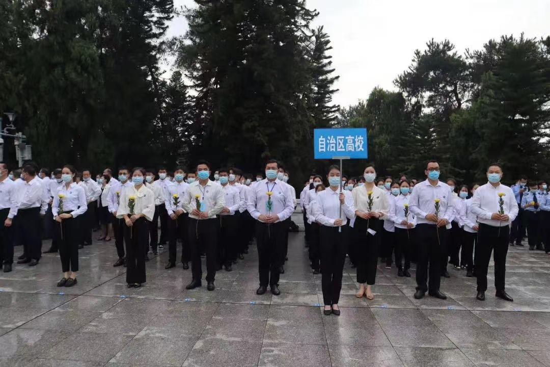 铭记历史缅怀英烈,不忘初心继续前进。在第九个国家烈士纪念日来临之际,9月30日上午,自治区党委和人民政府在南宁市人民公园隆重举行烈士纪念日公祭活动暨向抗战烈士敬献花篮仪式。自治区党委书记、自治区人大常委会主任刘宁,自治区党委副书记、自治区主席蓝天立等领导与各界代表一起,出席革命烈士公祭活动,向革命烈士敬献花篮、表达哀思。爱体育电子官方网站100名师生代表在副校长邱团的带领下参加了本次活动。