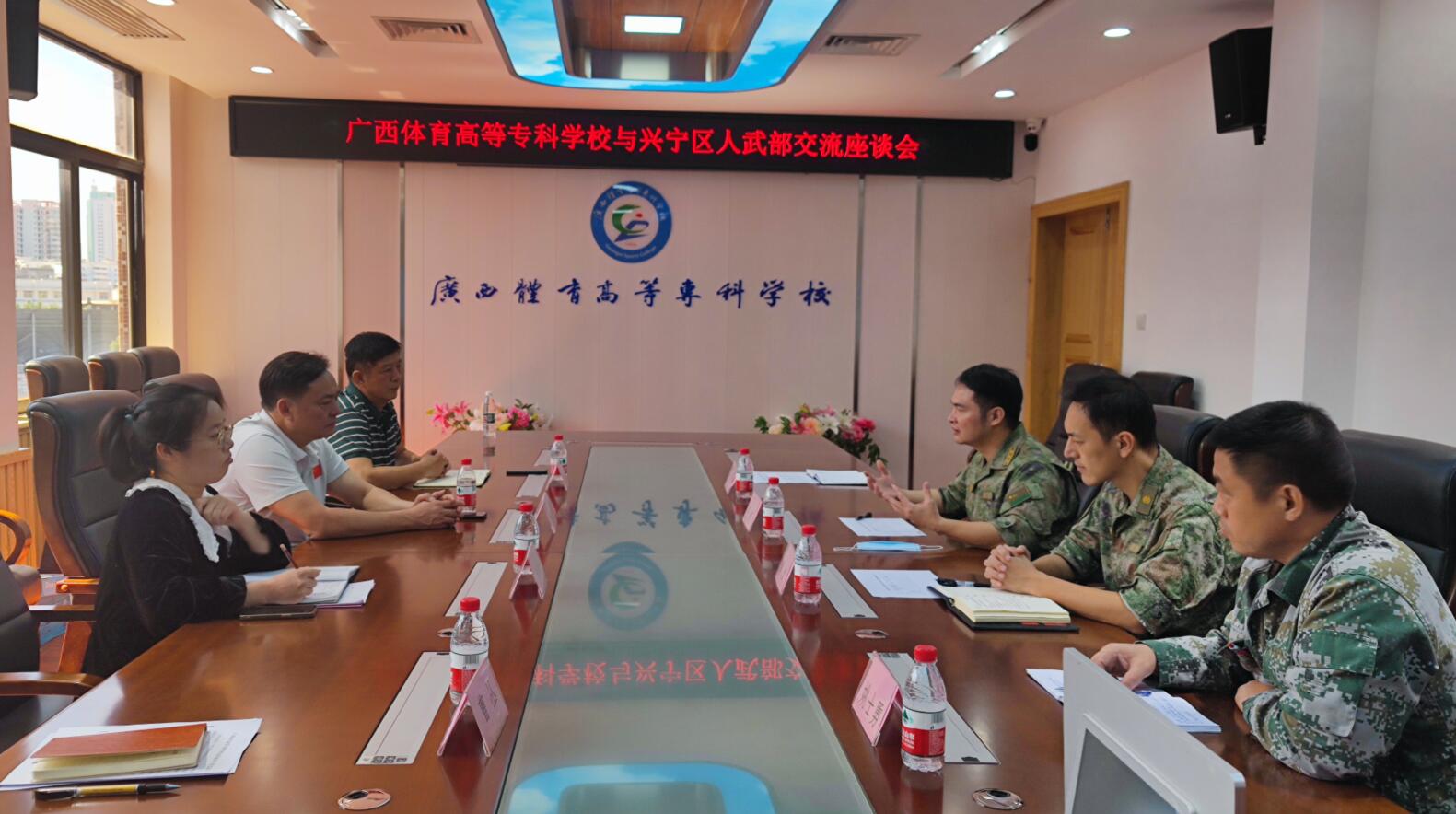 2022年10月11日上午,南宁市兴宁区人民武装部部长张伟等一行4人来爱体育电子官方网站交流调研,爱体育(中国)副校长邱团、学生工作处处长韦伦国及征兵工作站成员热情接待并进行了深入交流。