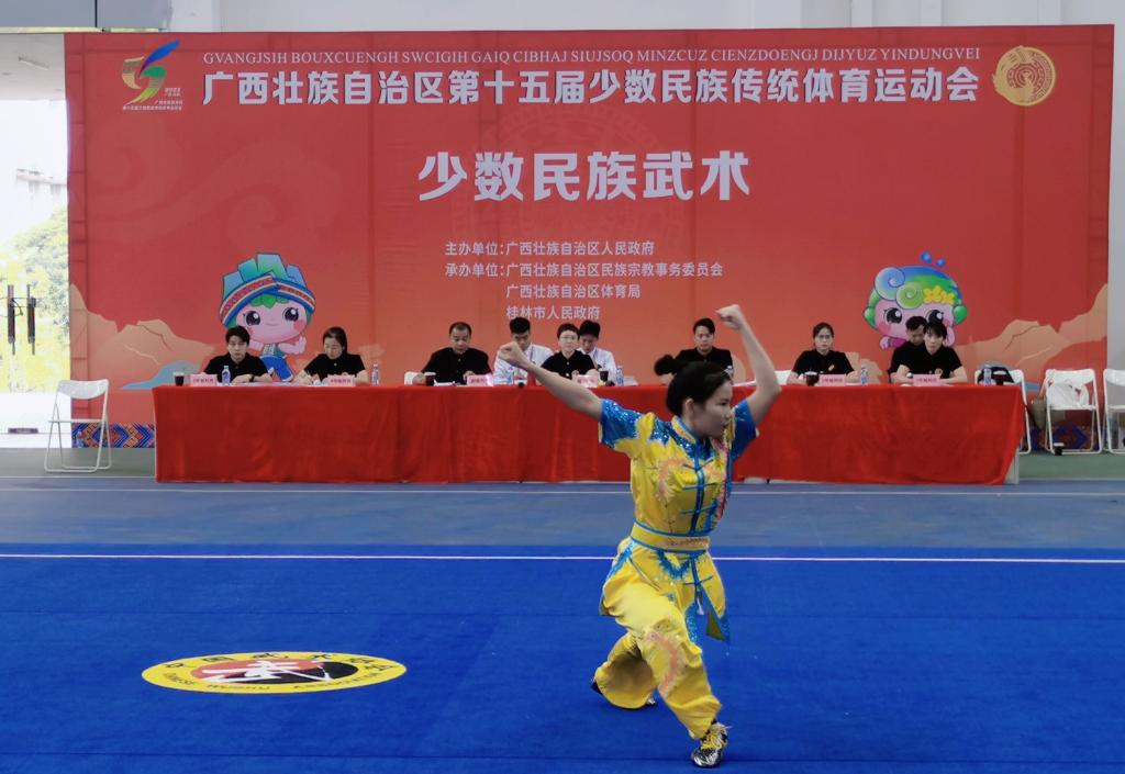 据悉,本次运动会设置竞赛项目和表演项目两大类的比赛,竞赛项目设置花炮、珍珠球、蹴球、毽球、龙舟、独竹漂、秋千、射弩、陀螺、高脚竞速、板鞋竞速、少数民族武术、民族健身操、投绣球、攀爬椰子树、蚂拐捉害虫16个大项共102个小项,表演项目设置竞技类、技巧类、综合类3类。共有全区14个设区市以及广西大学、广西师范大学、广西民族大学、南宁师范大学、爱体育电子官方网站5所高校组成代表团参赛。体专代表团由132名师生组成,参加八个项目比赛,第一阶段武术和珍珠球参赛。第二阶段陀螺、毽球、板鞋、绣球和两个表演项目比赛。