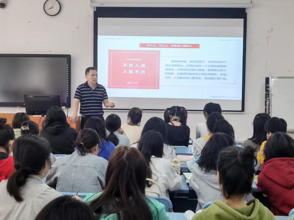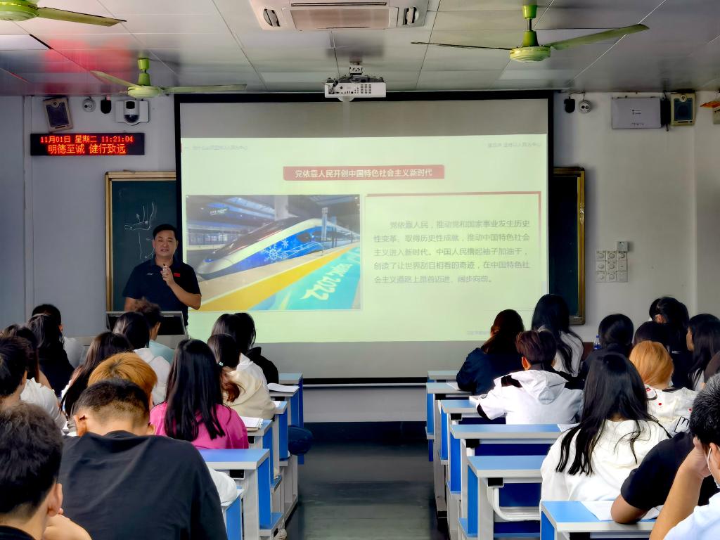 胡英清校长以“半床被子”等生动案例指出,我们党始终牢记全心全意为人民服务的宗旨,始终把人民群众的利益放在第一位。青年学生要不断增强对党的深厚感情,坚定永远跟党走的信念,提升责任意识和担当精神,树立学好专业技术,服务人民美好生活向往的志向。