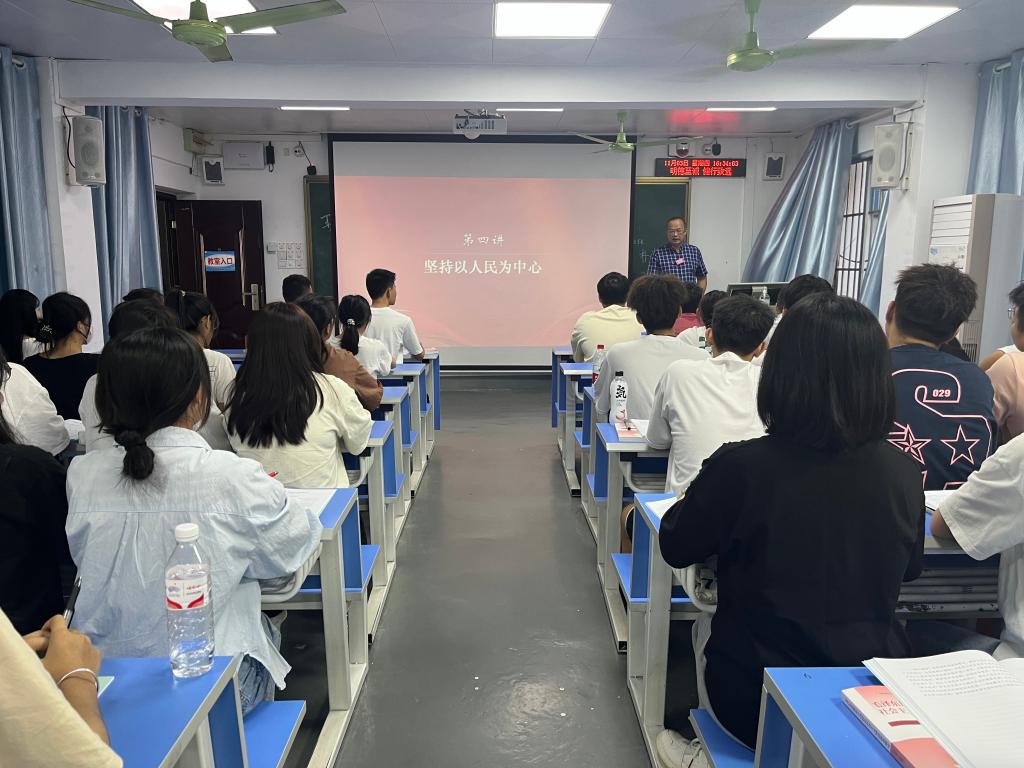 为深入学习宣传党的二十大精神,推动党的二十大精神进课堂进教材进头脑,用习近平新时代中国特色社会主义思想铸魂育人,11月1日至4日,爱体育(中国)党委书记杨昌鹏、校长胡英清、副书记李爱民、副校长邱团、覃世东,纪委书记罗黎造分别走上思政课讲台,结合党的二十大精神,以“坚持以人民为中心”为主题为各学院2022级学生做《习近平新时代中国特色社会主义思想概论》的专题授课。