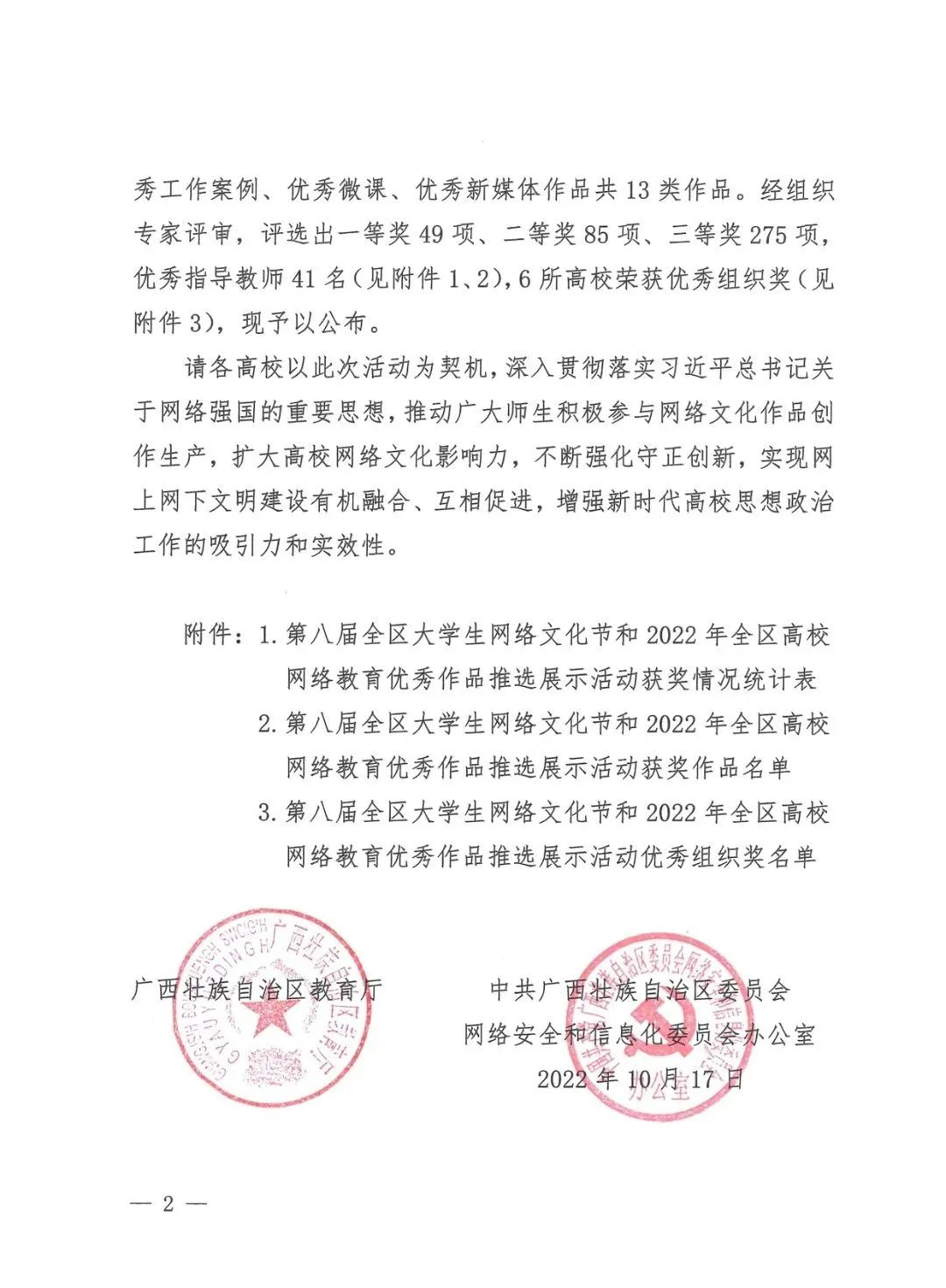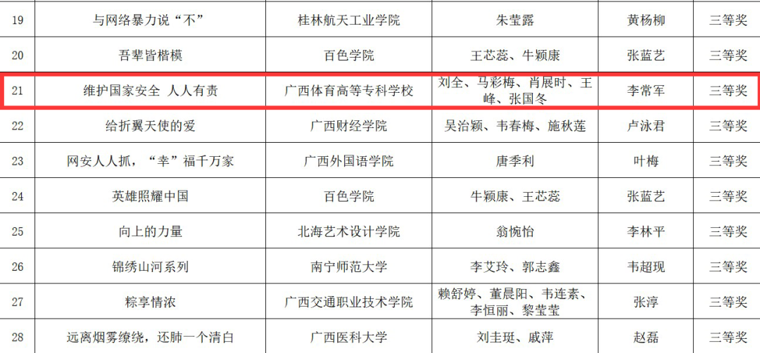 近日,根据自治区教育厅下发的《自治区教育厅 自治区党委网信办关于公布第八届全区大学生网络文化节和2022年全区高校网络教育优秀作品推选展示活动获奖名单的通知》(桂教思政〔2022〕28号),爱体育电子官方网站共有3项作品荣获三等奖。