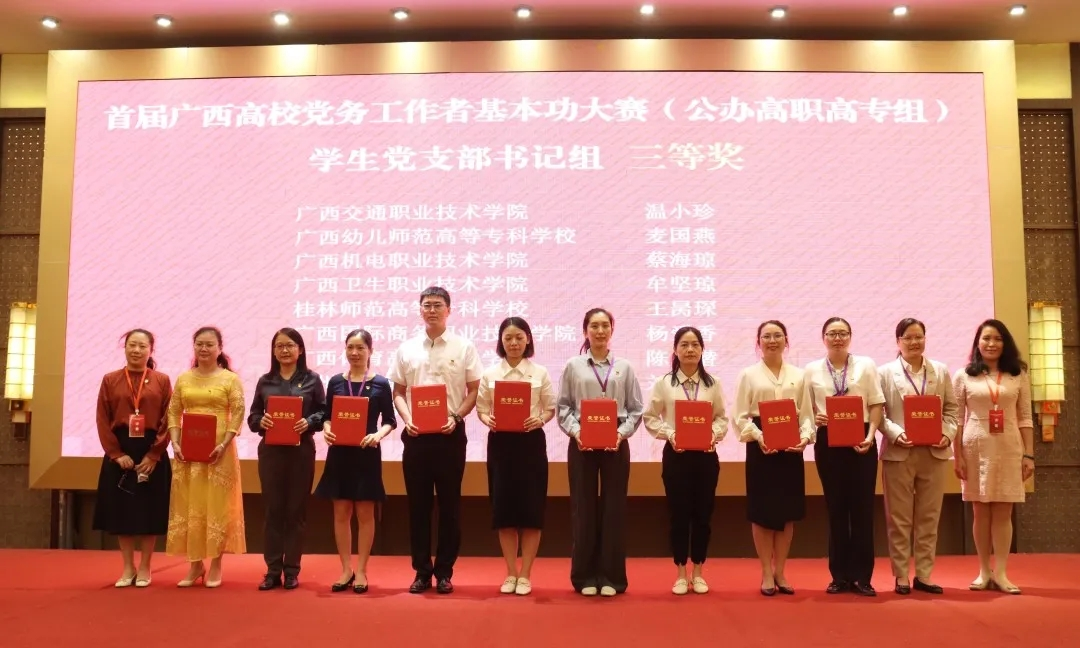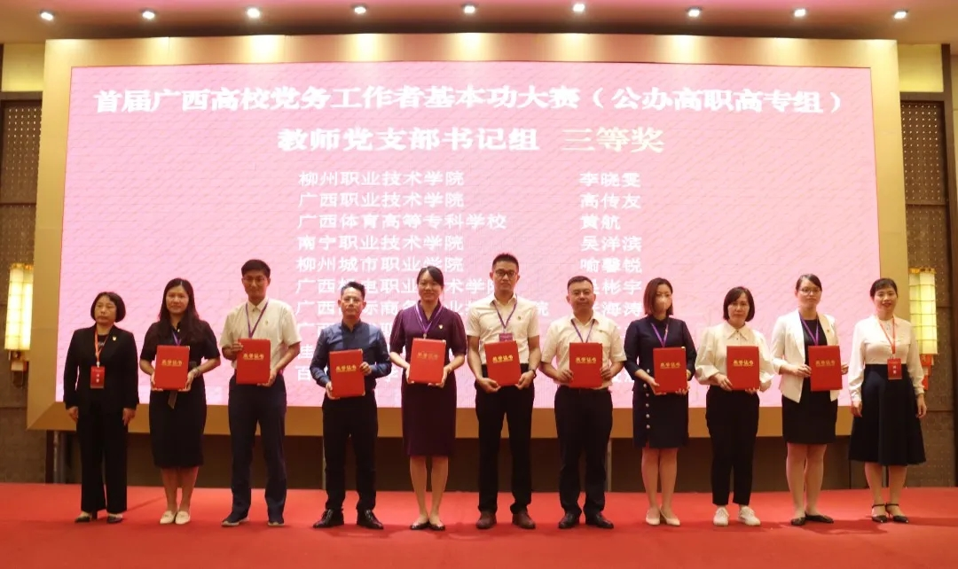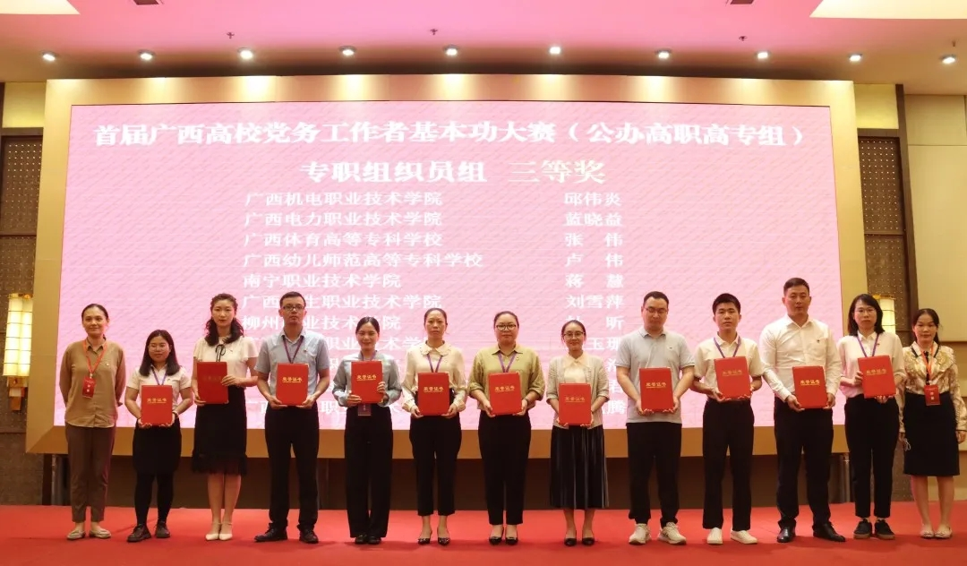 大赛历时2天,共设教师党支部书记组、学生党支部书记组和专职组织员组3个组别,赛程包括党务基础知识测试、微党课、党建工作案例3个环节,来自全区21所高职高专院校的60名党务工作者参加了公办高职高专院校组比赛。爱体育电子官方网站三位参赛选手积极备赛、参赛,展现了爱体育电子官方网站党务工作者扎实的基本功和比学赶超的精神面貌。