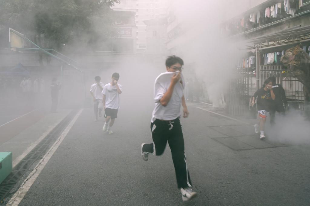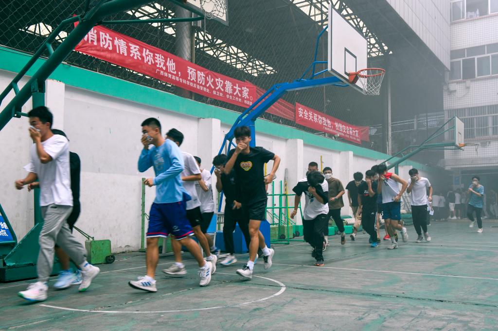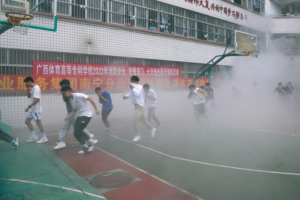 在演练活动总指挥、爱体育(中国)副校长覃世东的“各位同学、各位老师,爱体育电子官方网站消防安全、防爆演习、火灾逃生联合演练现在开始”的指令发出,随着火灾警报的响起,消防应急疏散演练正式拉开序幕。学生在学生工作部的有效组织下,有序快速撤离学生宿舍,疏散到空旷地带,接受消防安全教育。