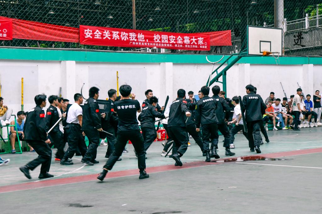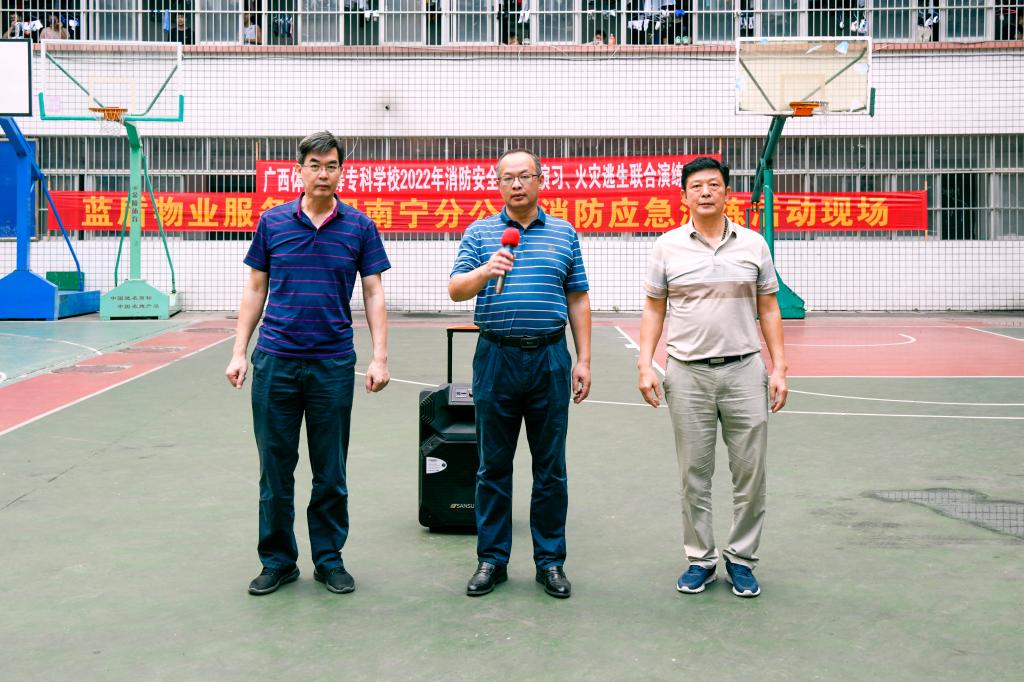 爱体育(中国)副校长覃世东(中)宣布联合演练开始