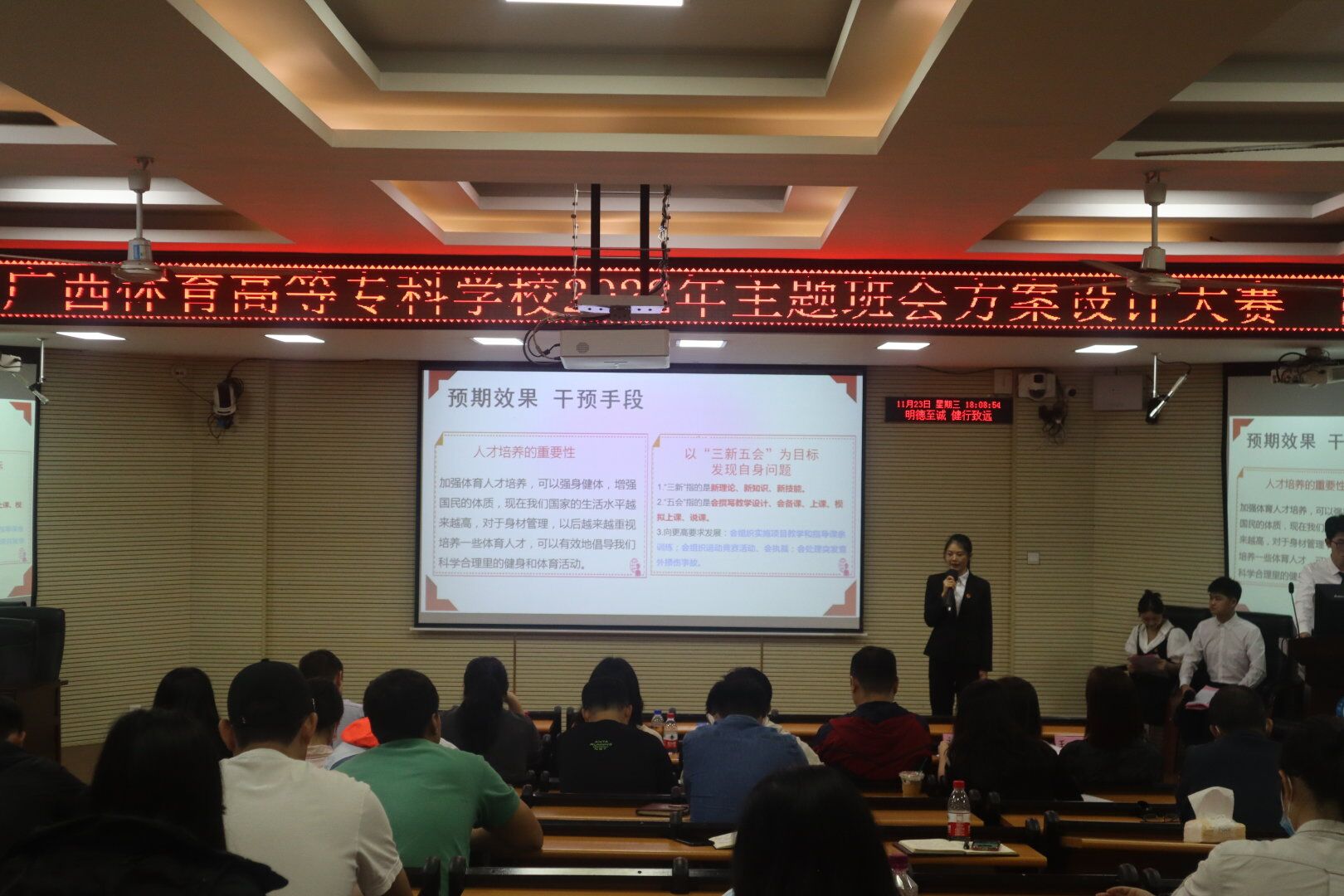 为加强和改进爱体育电子官方网站学生思想政治教育工作,总结主题班会活动的开展情况,进一步学习宣传贯彻党的二十大精神,11月23日,爱体育电子官方网站在公园路校区综合楼402报告厅举办2022年主题班会方案设计大赛。本次大赛由学生工作处主办,易班学生工作站协办。学生工作处、校团委和学院全体学工人员、各参赛队伍以及部分学生干部参加本次活动。