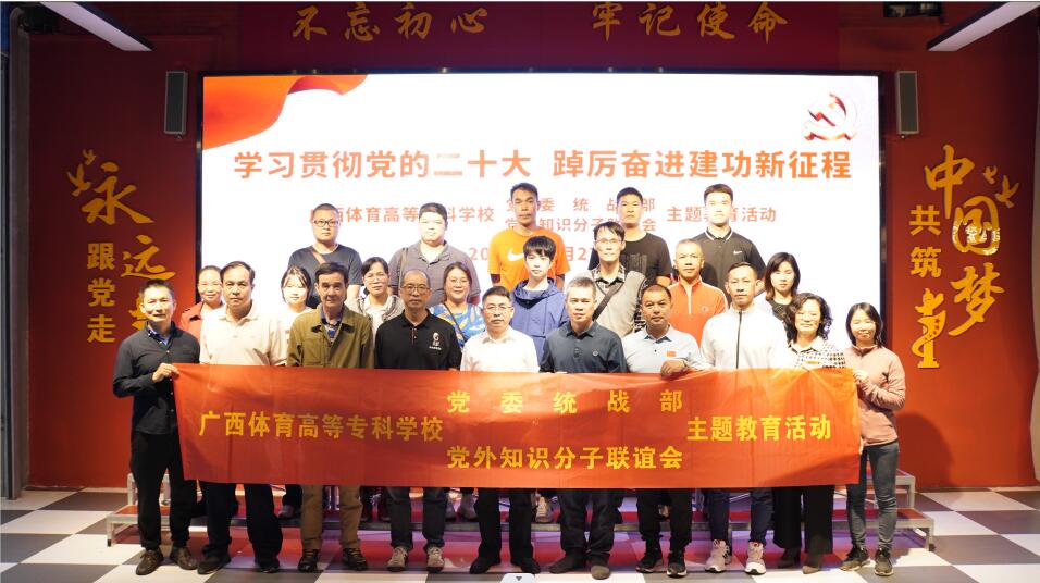 11月27日,爱体育电子官方网站党外知识分子联谊会赴南宁经开区两新领域电影党校开展“学习贯彻党的二十大 踔厉奋进建功新征程”主题教育活动。校党委李爱民副书记、统战部刘义飞部长、知联会会长、体育与教育学院韦军院长率校党外知识分子联谊会成员和统战部人员参加活动。