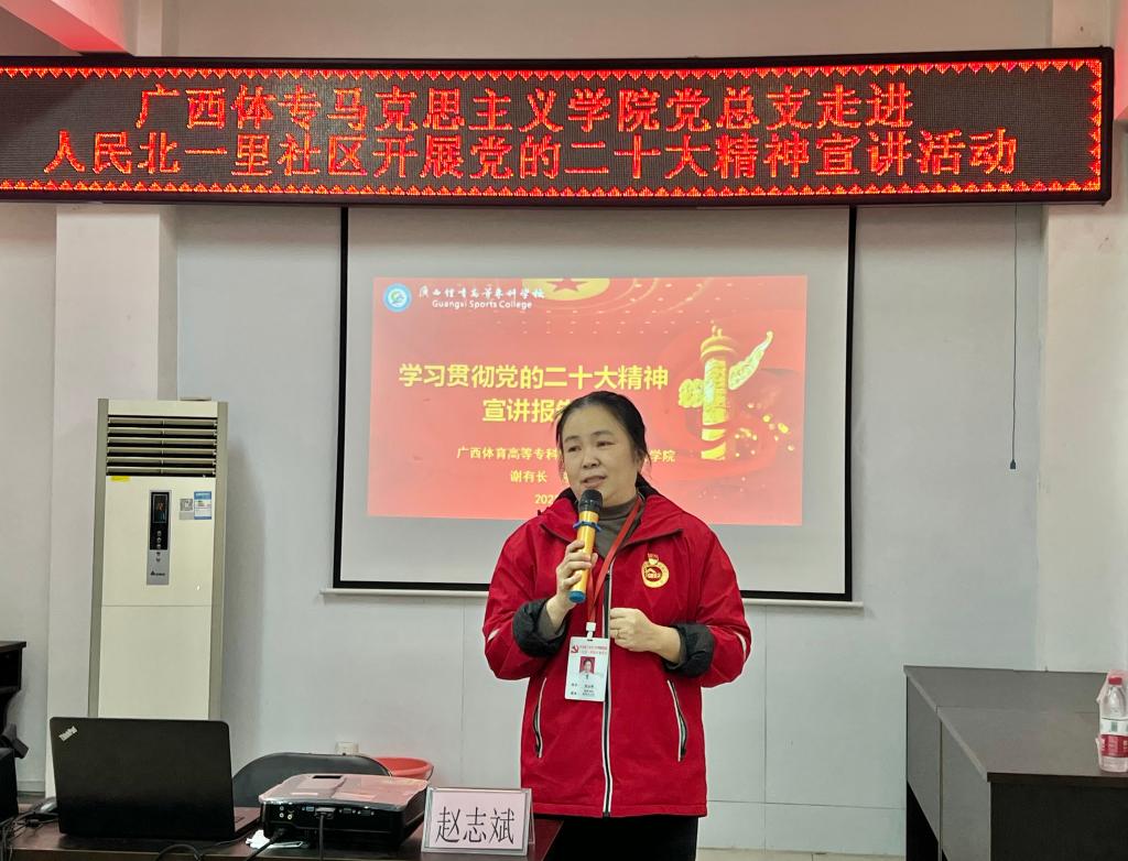 随后的活动中,马克思主义学院党总支副书记、院长谢有长教授作党的二十大精神专题宣讲报告。谢有长教授从“深刻领会党的二十大的主题和重大意义”、“深刻领会过去5年的工作和新时代10年的伟大变革”、“深刻领会开辟马克思主义中国化时代化新境界要求”、“深刻领会中国式现代化的中国特色和本质要求”、“深刻领会全面建设社会主义现代化国家的战略部署”、“深刻领会坚持党的全面领导和全面从严治党的重大部署”六个方面,通过平实的语言、生动的案例和开阔的视野,对党的二十大精神作深入浅出的解读,并回应了当前干部群众关注的热点问题。他指出,党的二十大擘画了全面建成社会主义现代化强国、以中国式现代化全面推进中华民族伟大复兴的宏伟蓝图,明确了新时代新征程党和国家事业发展的目标任务。今年是全面贯彻党的二十大精神的开局之年,在以习近平同志为核心的党中央坚强领导下,脚踏实地、埋头苦干,我们就一定能够把党的二十大确立的宏伟目标变为美好现实。宣讲报告为马克思主义学院党员教师及社区党员干部进一步学深悟透党的二十大精神带来了新的启迪。