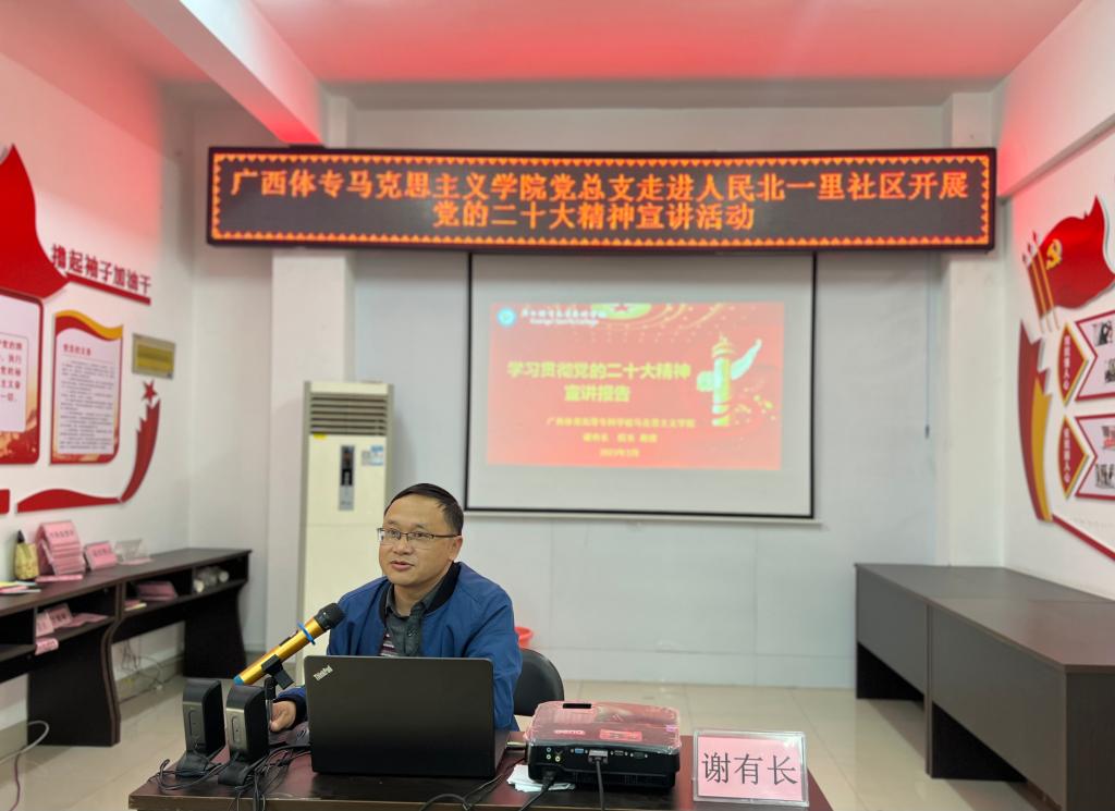 为深入学习宣传贯彻党的二十大精神,推动党的二十大精神入脑入心,充分发挥党组织战斗堡垒作用,2月20日下午,马克思主义学院党总支部走进人民北一里社区,开展党的二十大精神宣讲进社区活动。马克思主义学院党总支部全体党员、朝阳街道人民北一里社区全体党员参加活动。活动由马克思主义学院教师第二党支部书记黄航同志主持。