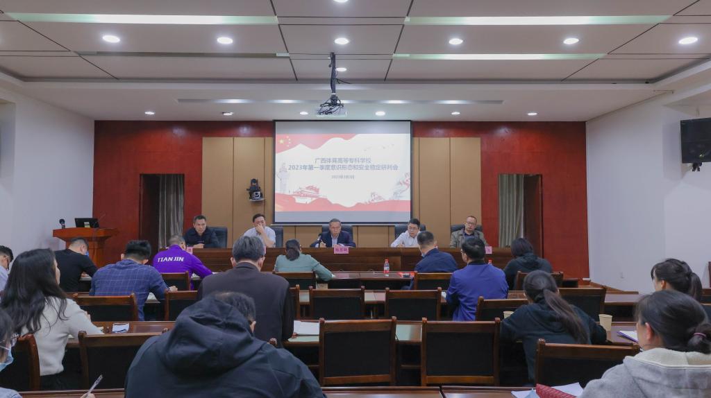 3月3日下午,爱体育电子官方网站在七楼会议室召开2023年第一季度意识形态和安全稳定形势分析研判会。校党委书记杨昌鹏、党委副书记李爱民、副校长邱团、副校长覃世东、纪委书记罗黎造,各部门主要负责人,各学院书记、副书记参加了会议。会议由杨昌鹏书记主持。