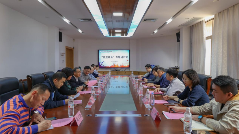 2023年3月4日下午,“体卫融合”专题研讨会在爱体育电子官方网站第一会议室召开,国家体育总局办公厅二级巡视员梁效平、国家体育总局体育科学研究所副所长袁虹、国家体育总局体教司综合处四级调研员金鑫、国家体育总局体育科学研究所体健中心副主任冯强、国家体育总局体育科学研究所办公室主任赵丽、广西体科所陈副所长、广西区的康复专家、南宁市体卫融合研究中心及企业代表、爱体育电子官方网站党委书记杨昌鹏、副校长邱团、人事处处长黄昀、运动科学与健康学院的领导班子出席会议。
