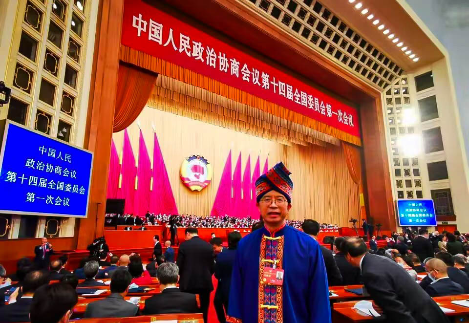 韦军老师身着壮族服装出席全国政协十四届一次会议