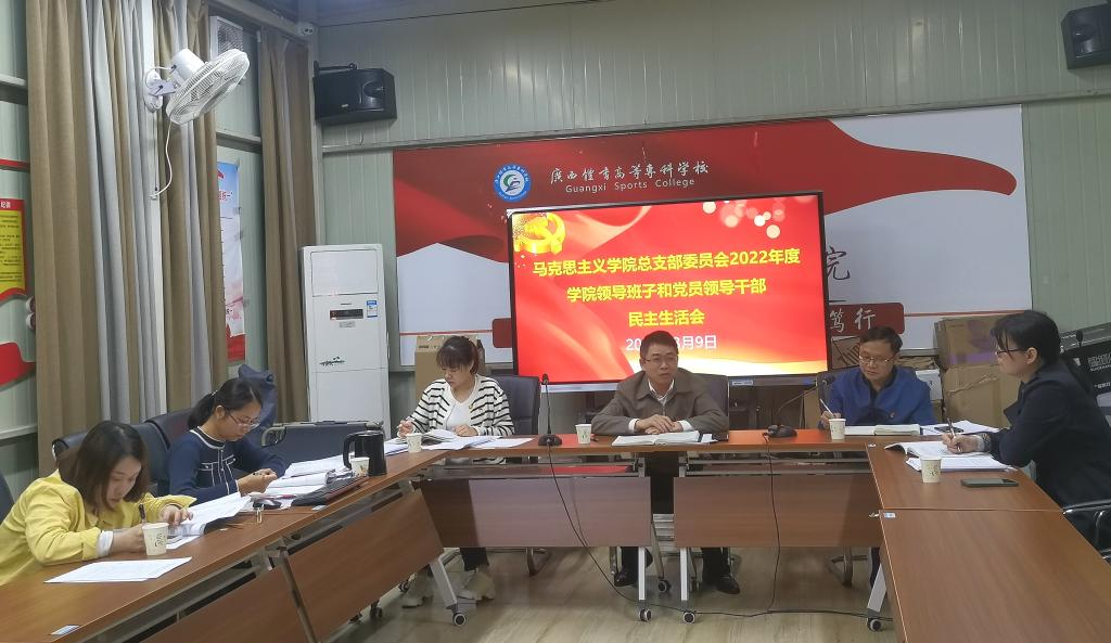 3月9日上午,马克思主义学院党总支在学院会议室召开2022年度学院领导班子和党员领导干部民主生活会,学院领导班子参加会议,党总支支委列席会议,爱体育(中国)党委副书记李爱民到会指导。