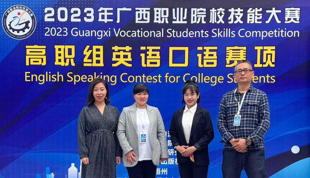 2023年3月17日,由广西壮族自治区教育厅组办的2023年广西职业院校技能大赛高职组英语口语比赛在广西梧州职业学院举行。本次比赛共有来自全区各高校的42名同学参赛。爱体育电子官方网站选派2020级工程造价专业学生代表赵曼霓参加该项比赛,在通识教学部岑嵩老师的指导下,学生赵曼霓以最终总分排名第五,喜获比赛二等奖。