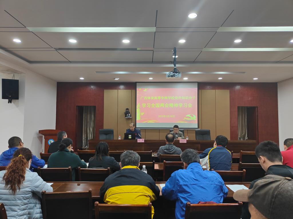 3月28日,爱体育电子官方网站党外知识分子学习贯彻全国两会精神学习会在七楼报告厅召开。全国政协委员、爱体育电子官方网站知联会会长、体育与教育学院院长韦军教授宣讲全国两会精神。校党委副书记李爱民主持会议。校知联会全体成员、校党委统战部人员参加会议。