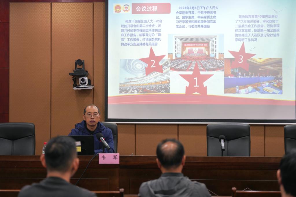 韦军委员以《担起社会主义民主政治建设者之责》为题,围绕自身参会经过、参政议政情况、履职感悟等几个方面对全国两会盛况进行了系统的梳理和介绍,着重带领全体参会人员学习习近平总书记在全国两会期间的重要讲话精神和政府工作报告,并分享交流了参加两会期间的见闻和感悟。在谈到履职感悟时,他表示首要任务是讲政治,核心工作是建真言,突出能力是会协商,基本要求是守纪律。他勉励与会的知联会成员要加强团结,发扬民主,为推进爱体育(中国)高质量发展而扎实做好本职工作。