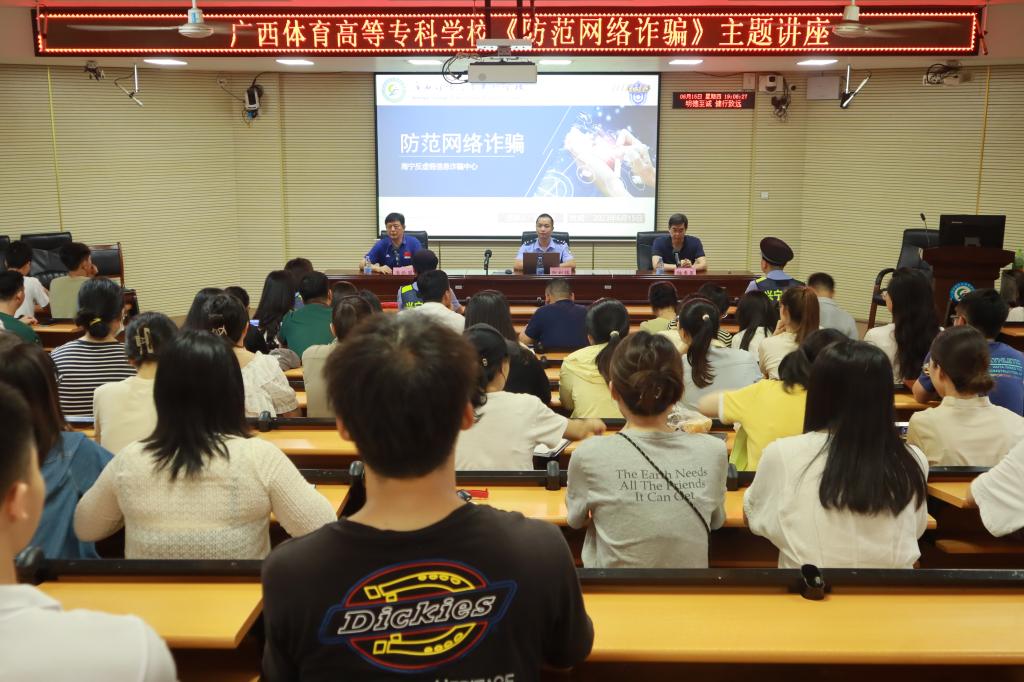 为进一步做好安全宣传教育工作,加强平安校园建设,爱体育电子官方网站于6月15日开展防范电信网络诈骗专题培训活动。本次培训活动邀请了南宁市反虚假信息诈骗中心阮利辉民警担任主讲,后勤管理处陆勇军处长出席活动,各学院副书记、学工人员、全体辅导员及100多名学生代表参加培训。活动由学生工作处韦伦国处长主持。