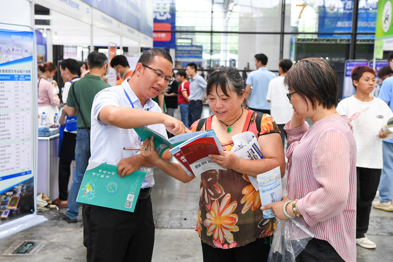 招生咨询会期间,覃世东副校长到南宁国际会展中心现场咨询会爱体育电子官方网站展位指导工作。爱体育电子官方网站共发放招生宣传册、纪念品等各类招生宣传材料5000多份,由招生就业处、各学院、学生志愿者组成的招生宣传队伍,从爱体育(中国)办学特点、专业优势、就业形势、招生政策等方面向考生、家长进行详细介绍,为广大考生提供信息咨询服务和志愿填报指导,取得较好成效。