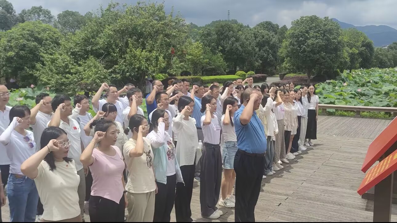 在古田会议旧址前,覃世东副校长带领党员们重温入党誓词,“我志愿加入中国共产党......随时准备为党和人民牺牲一切,永不叛党。”党员们面对誓词,更加坚定了为党的事业奋斗终生的决心和信心。