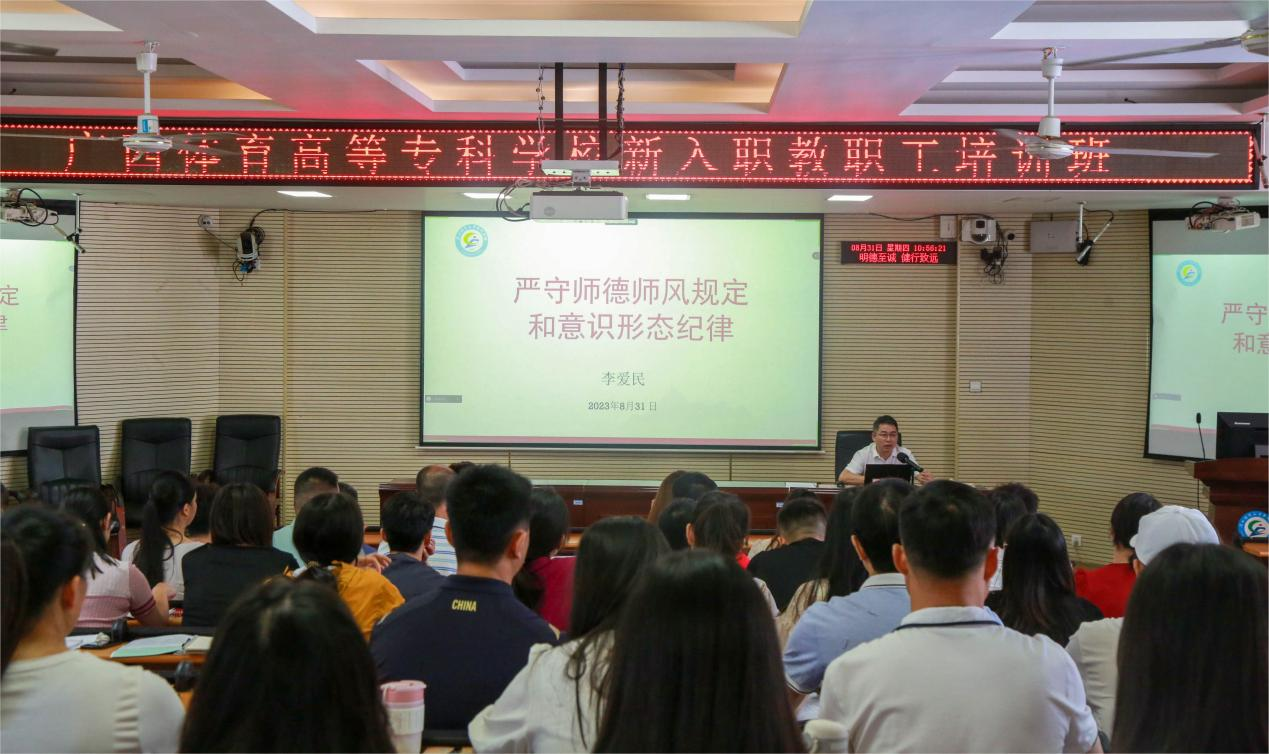 8月31日上午,培训班在爱体育(中国)综合楼402报告厅开班。开班仪式上,爱体育(中国)党委书记杨昌鹏作开班动员讲话,杨昌鹏书记强调了举办培训班的重要意义,并对新入职教职工提出殷切期望:一是要提高政治站位,强化为人师表意识;二是重视制度学习,尽快熟悉爱体育(中国)要求;三是要做好职业规划,明确自己的发展目标;四是要勇于实践创新,积极担当作为;五是要严明学习纪律,做到学以致用。