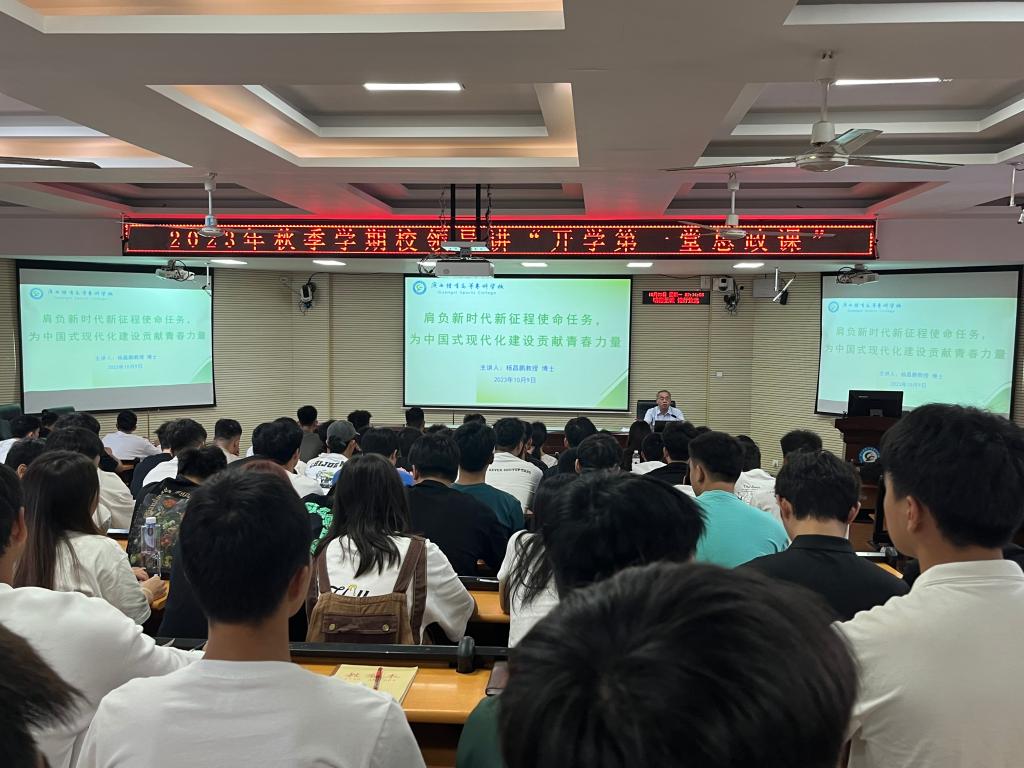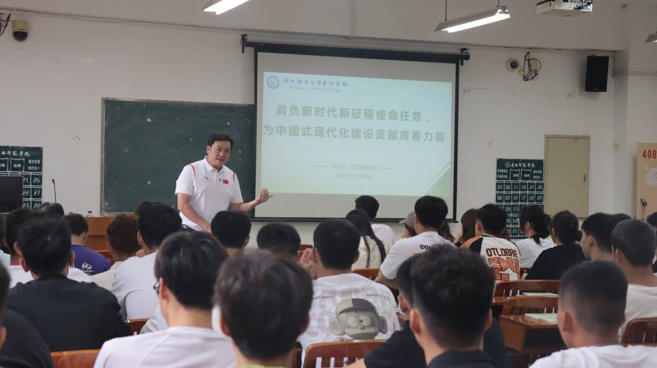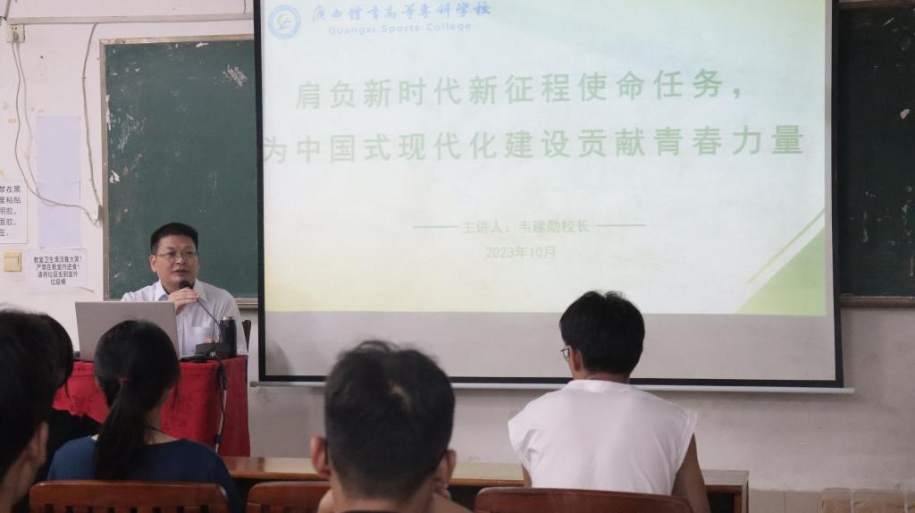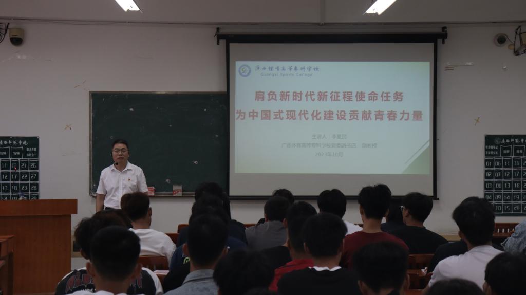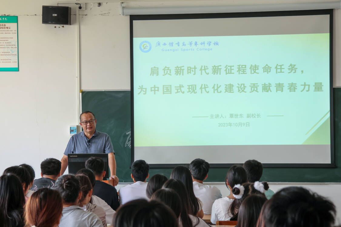 10月9日是新生正式上课的第一天,爱体育(中国)党委书记杨昌鹏、校长韦建勋、爱体育(中国)党委副书记李爱民、副校长邱团、副校长覃世东、爱体育(中国)纪委书记罗黎造纷纷走进课堂,以《肩负新时代新征程使命任务,为中国式现代化建设贡献青春力量》为题,为新生讲授了“开学第一堂思政课”。