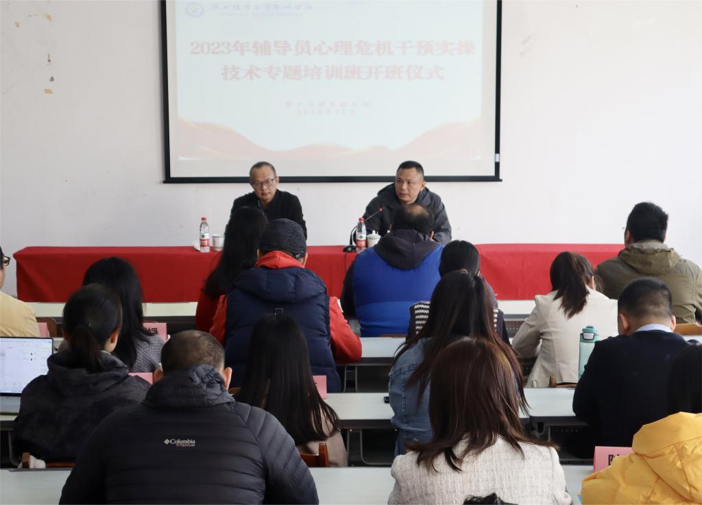 为深入学习贯彻习近平总书记关于加强高校思想政治工作的重要指示批示精神,强化辅导员心理危机干预工作能力,进一步提升全校辅导员的心理健康教育专业化水平,11月17日—18日,爱体育电子官方网站在长岗校区瑞兴楼314教室举办为期2天的辅导员心理危机干预实操技术专题培训班。校党委委员、副校长覃世东出席开班仪式并做动员讲话,开班仪式由学工与招生就业处处长覃琳主持。