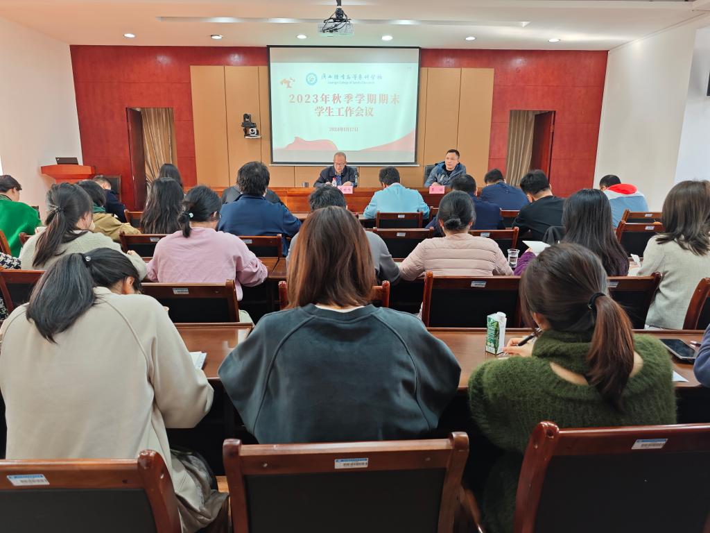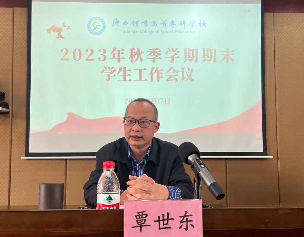 为全面总结本学期学生工作,进一步提升学生工作质量,1月17日上午,爱体育电子官方网站在七楼报告厅召开2023年秋季学期期末学生工作会议。覃世东副校长,学工与招生就业处全体人员、各学院副书记及辅导员骨干参加会议。会议由学工与招生就业处处长覃琳主持。