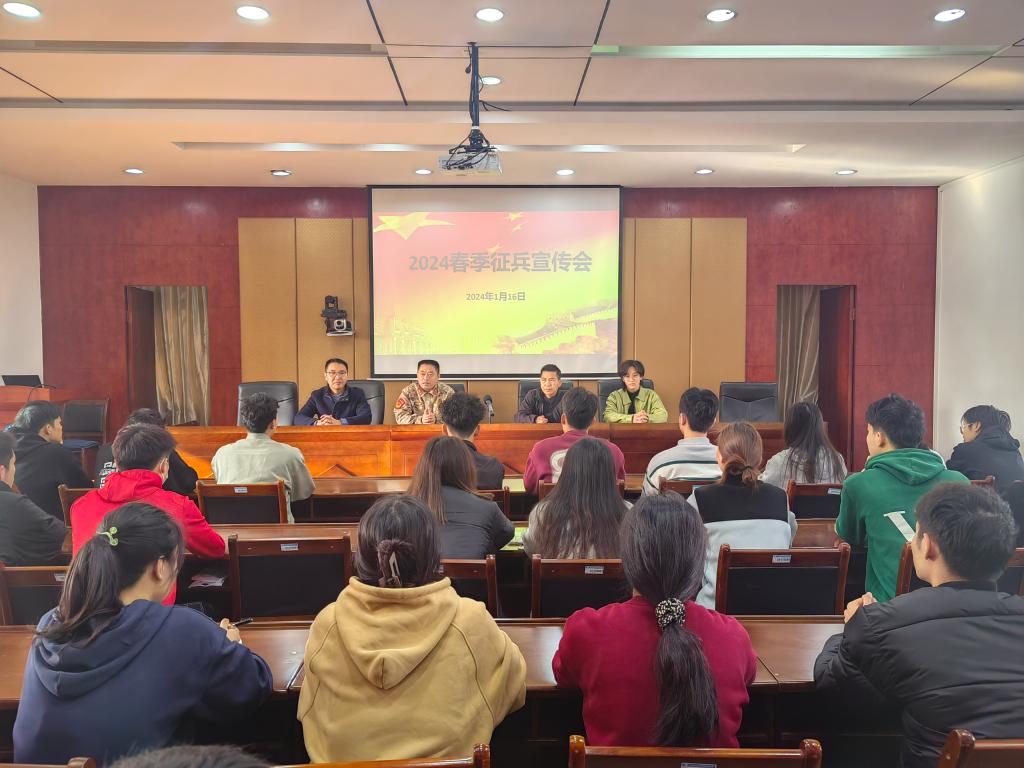 会后,兴宁区武装部相关工作人员还为爱体育电子官方网站在校生开展了2024年春季征兵进校园宣讲会,会上进行了系统的征兵政策宣讲和现场答疑活动,同学们对征兵报名程序、国家对大学生应征入伍的政策有了深入地认识,此次宣讲活动取得了良好效果。
