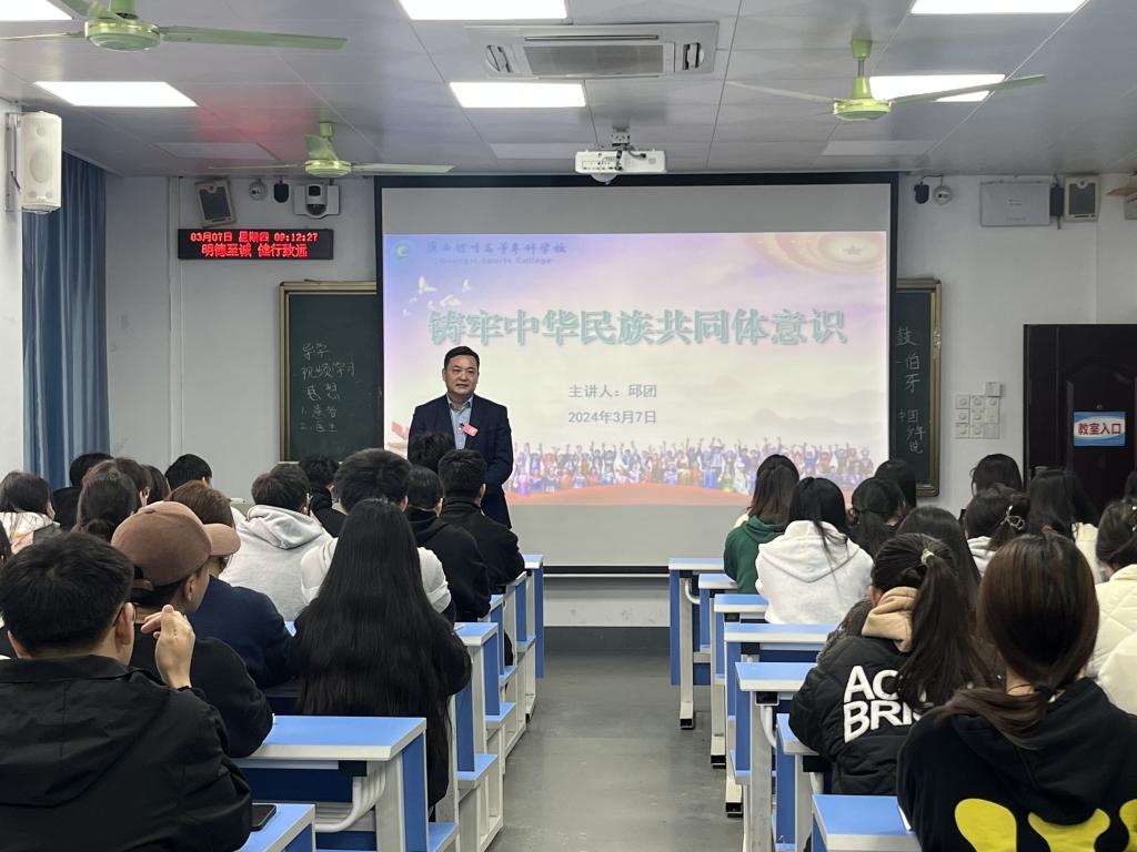 2024年春季学期开学第一周,爱体育(中国)党委书记杨昌鹏、校长韦建勋、爱体育(中国)党委副书记邱团、副校长覃世东、爱体育(中国)纪委书记罗黎造纷纷走进课堂,为2022级、2023级在校生上题为《铸牢中华民族共同体意识》的开学第一堂思政课。