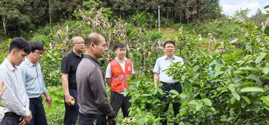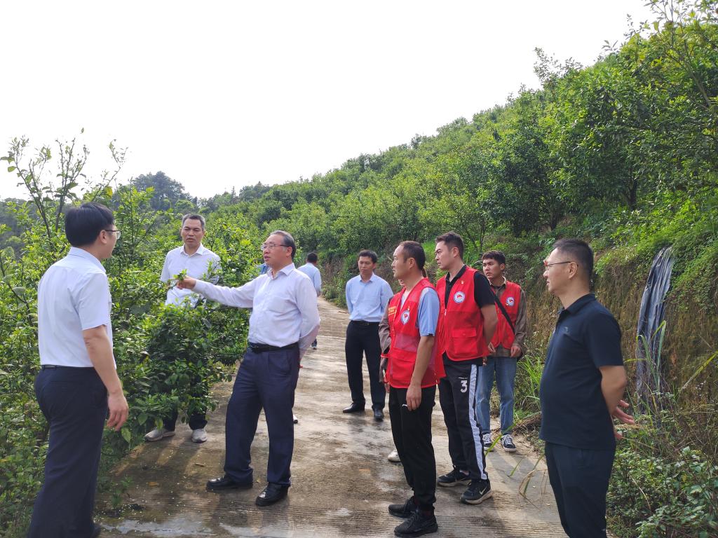 党委书记杨昌鹏、纪委书记罗黎造查看杨垌村柑橘种植情况