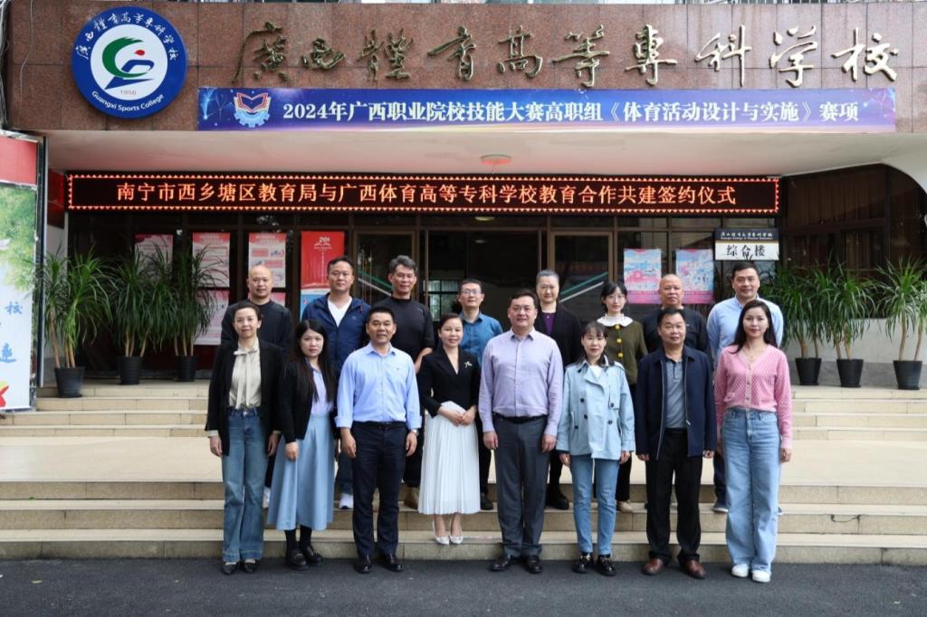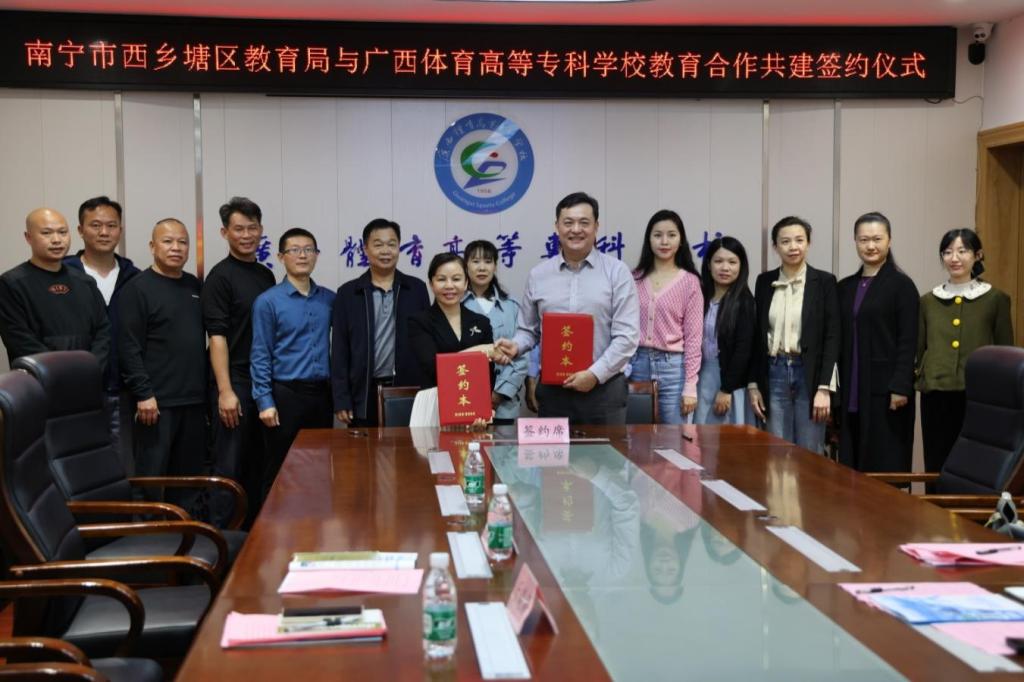 为有效践行国家产教融合相关政策,推动政校协同育人工作,4月8日,南宁市西乡塘区教育局与爱体育电子官方网站在公园路校区第一会议室共同签署教育合作共建协议。爱体育(中国)党委副书记邱团,南宁市西乡塘区教育局党组书记、局长乐晓薇,副局长杨华良,教育研究室主任樊洪华,体育室主任黄漫,爱体育电子官方网站体育师范学院全体班子成员和教师代表以及全国运动健康产教融合共同体理事单位代表出席签约仪式。签约仪式由体育师范学院院长苏祝捷主持。