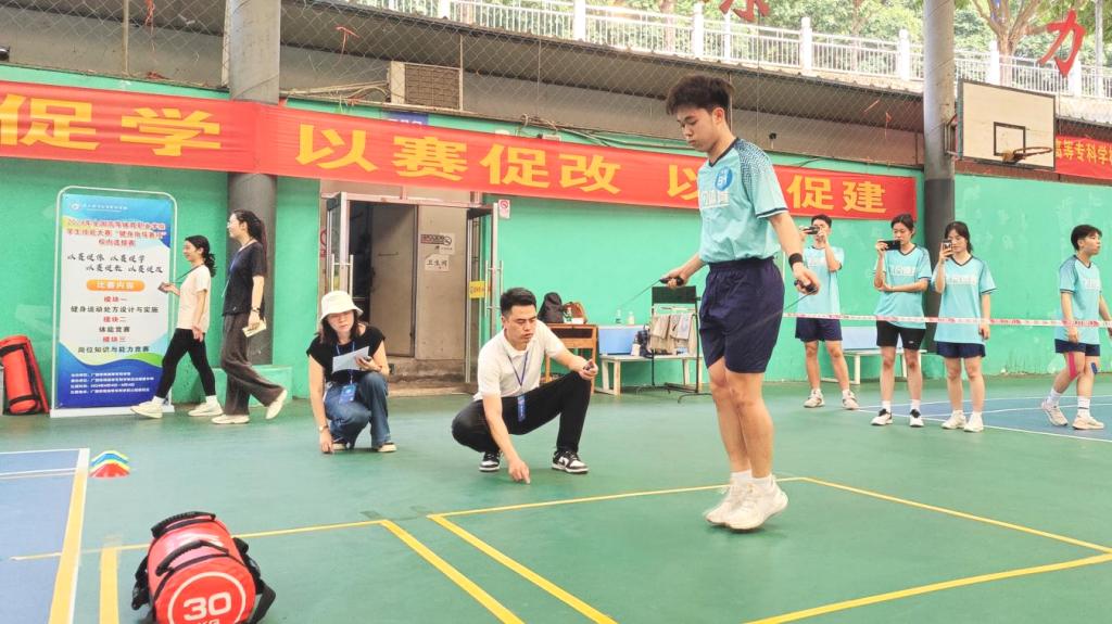 此次比赛采用团体积分赛形式进行,每支队伍由4名参赛选手组成,比赛共设“岗位知识与能力竞赛”“健身运动处方设计与实施”“体能竞赛”三个模块的竞技项目,对参赛选手的专业知识掌握与应用、体能水平及团队协作能力进行全面的考察与检验。