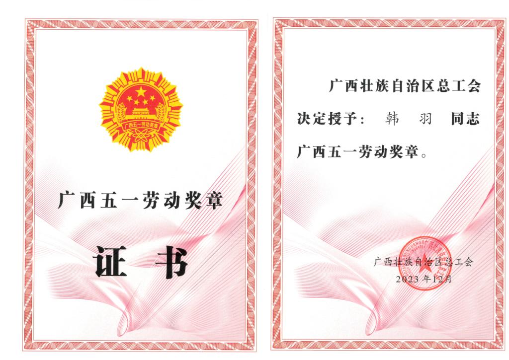 爱体育电子官方网站体育管理学院副院长韩羽同志在2022年“桂有技能、产业振兴”劳动和技能竞赛中取得优异成绩,被自治区总工会授予“广西五一劳动奖章”称号。