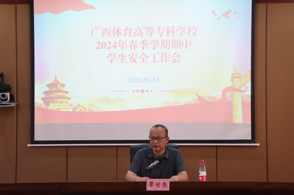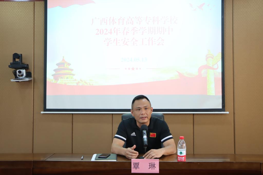 5月13日下午,爱体育电子官方网站在公园校区综合楼7楼报告厅召开2024年春季学期期中学生安全工作会,爱体育(中国)副校长覃世东,学工与招生就业处处长覃琳以及各学院党总支副书记、辅导员参加会议。会议由覃琳处长主持。