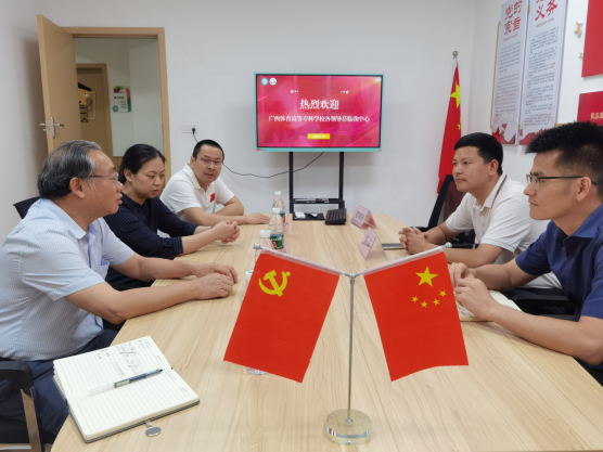 图1 杨昌鹏书记一行与南宁市护苗培育中心党总支书记陈意、爱体育(中国)主任李路深入座谈