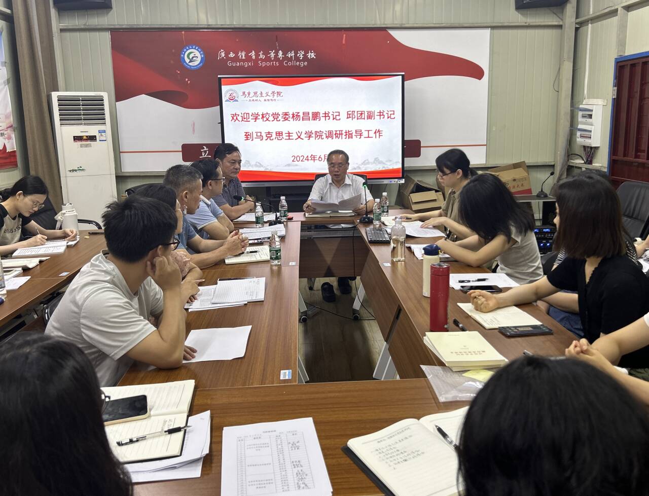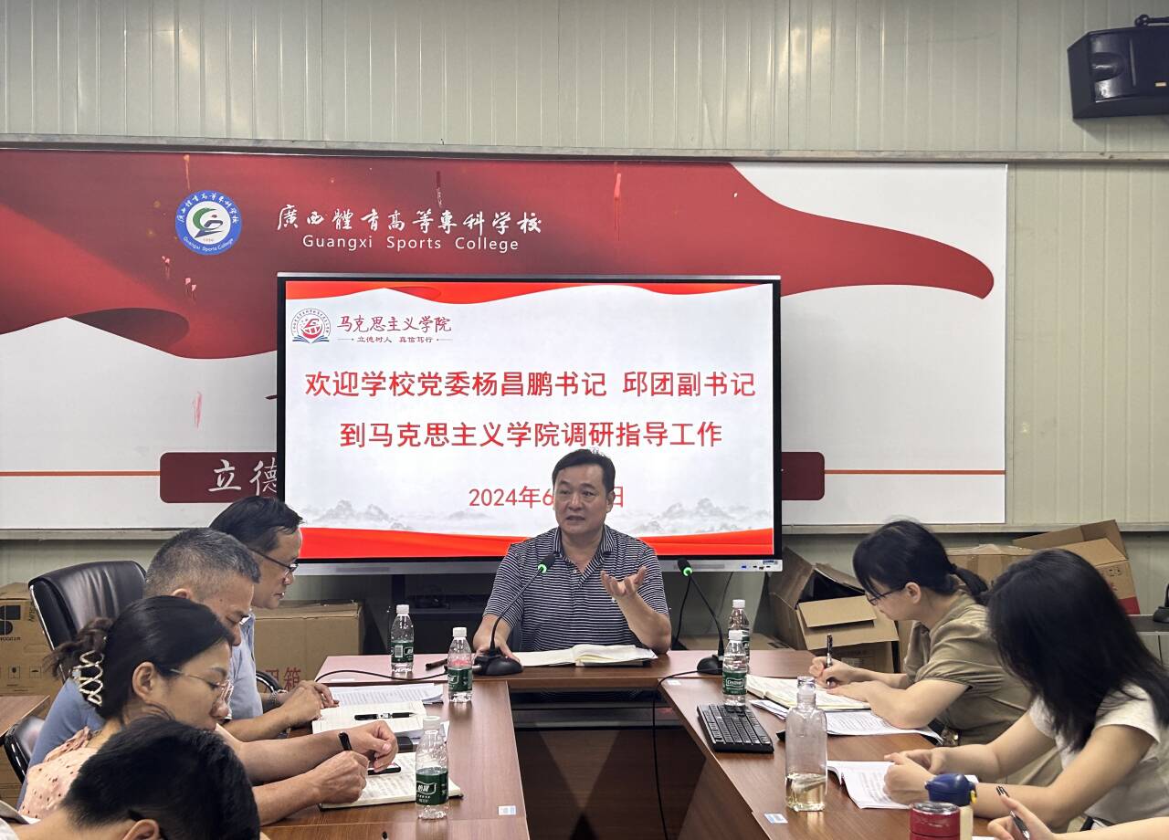 6月19日下午,爱体育(中国)党委杨昌鹏书记、邱团副书记到马克思主义学院调研指导工作。爱体育(中国)党委宣传部部长刘义飞、马克思主义学院班子成员、全体思政课教师参加了调研座谈会。会议由马克思主义学院院长黄航主持。