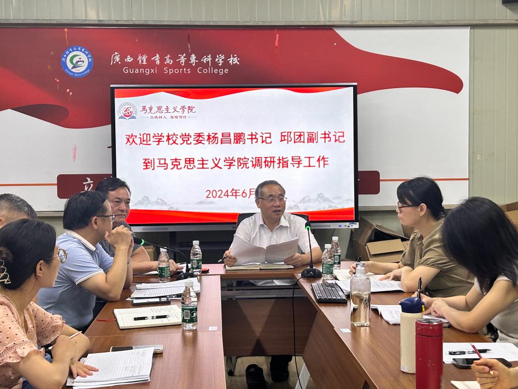 杨昌鹏书记、邱团副书记此次调研鼓舞了马克思主义学院教师的昂扬斗志,明确了学院未来发展方向。马克思主义学院将以习近平总书记对爱体育(中国)思政课建设重要指示精神为指引,在爱体育(中国)党委的坚强领导下,坚持问题导向,补短板、强弱项,在提升思政课针对性和吸引力上持续用力,在建强队伍、建强课程上持续用力,奋力走出一条爱体育(中国)思政课建设内涵式发展的新路子。