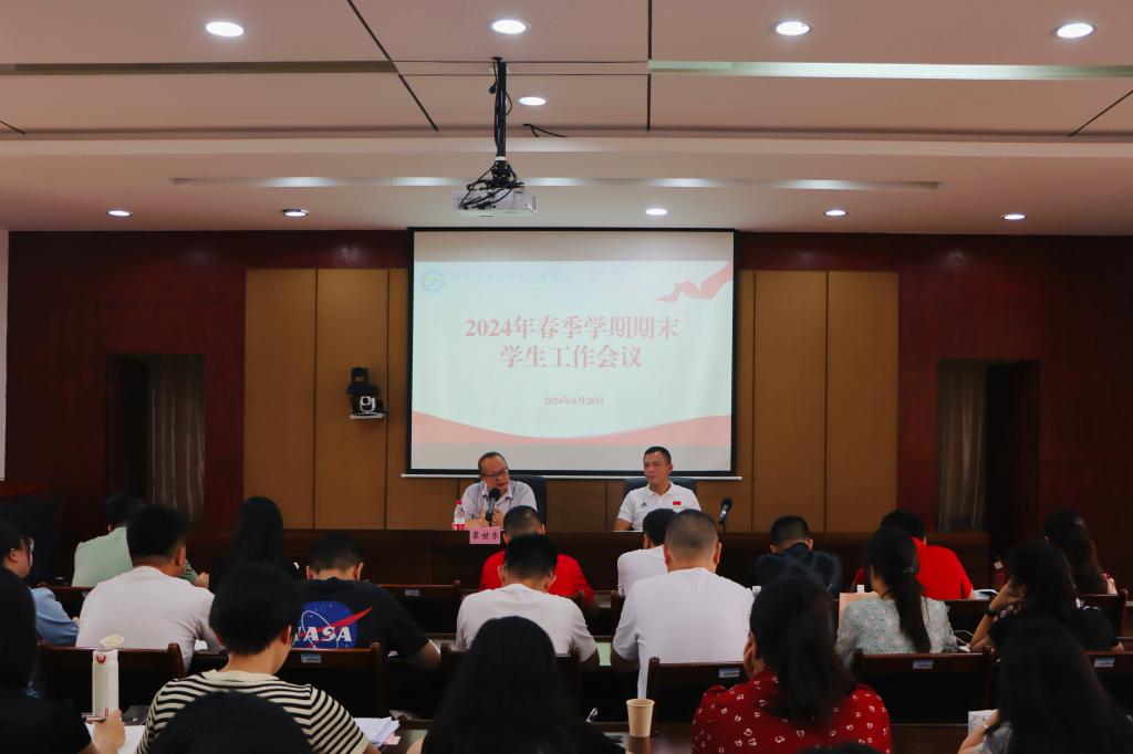 为全面提升学生工作质量,进一步落实毕业生离校工作,扎实推进新校区学生搬迁工作,6月20日上午,爱体育(中国)2024年春季学期期末学生工作会议在七楼报告厅召开。爱体育(中国)党委委员、副校长覃世东,学工与招生就业处全体成员、各学院党总支副书记及全体辅导员参加会议。会议由学工与招生就业处处长覃琳主持。