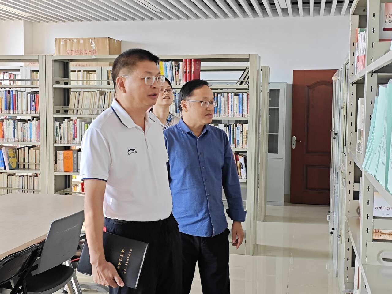 调研座谈会前,韦建勋校长走访了马克思主义学院的办公场地和图书资料室。