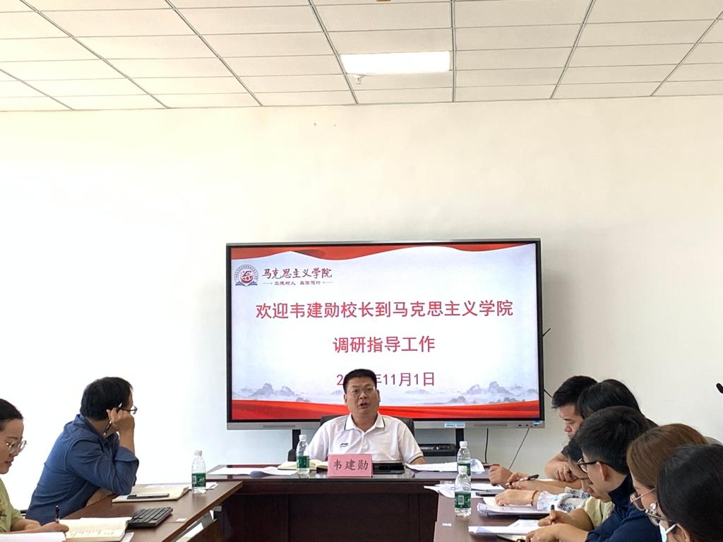 11月1日上午,韦建勋校长到马克思主义学院开展调研指导,爱体育(中国)党委组织部、教师工作部部长朱国铭、马克思主义学院班子成员及教师代表参加了调研座谈会。会议由马克思主义学院院长黄航主持。