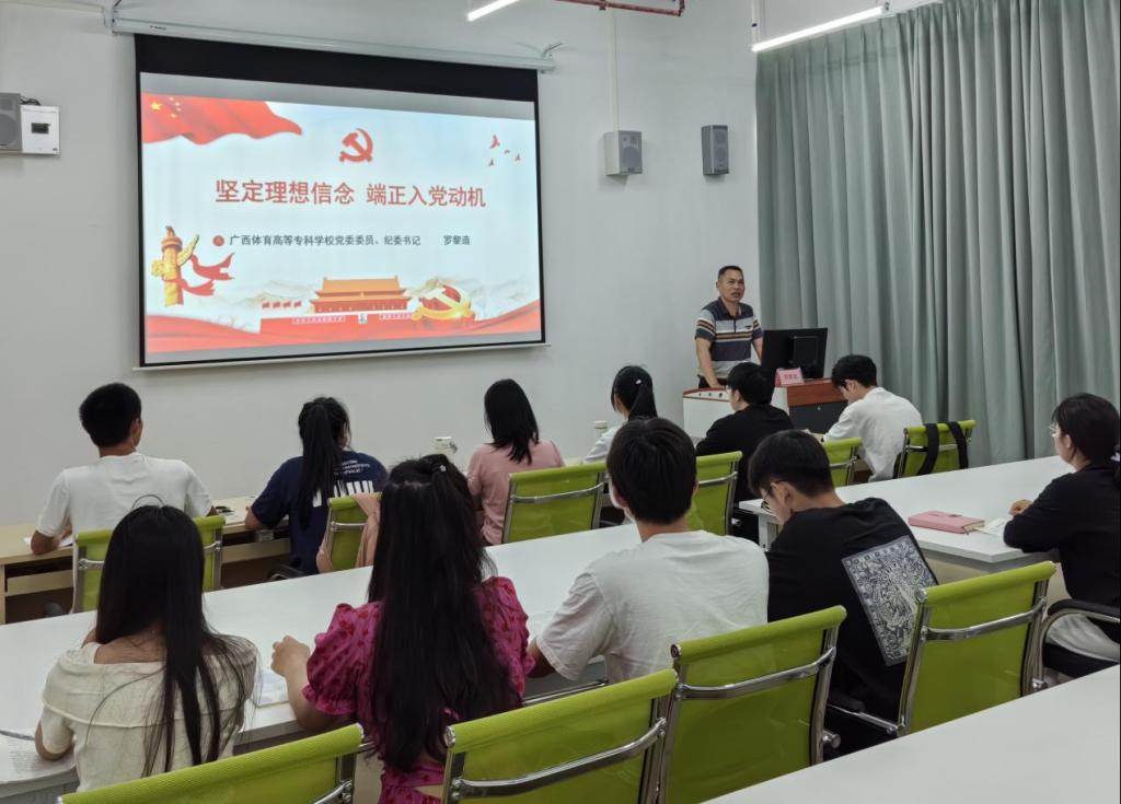 11月13日,爱体育(中国)党委委员、纪委书记罗黎造在行政楼副楼303教室为体育建筑学院分党校第3期入党积极分子培训班学员讲授了《坚定理想信念,端正入党动机》专题党课。
