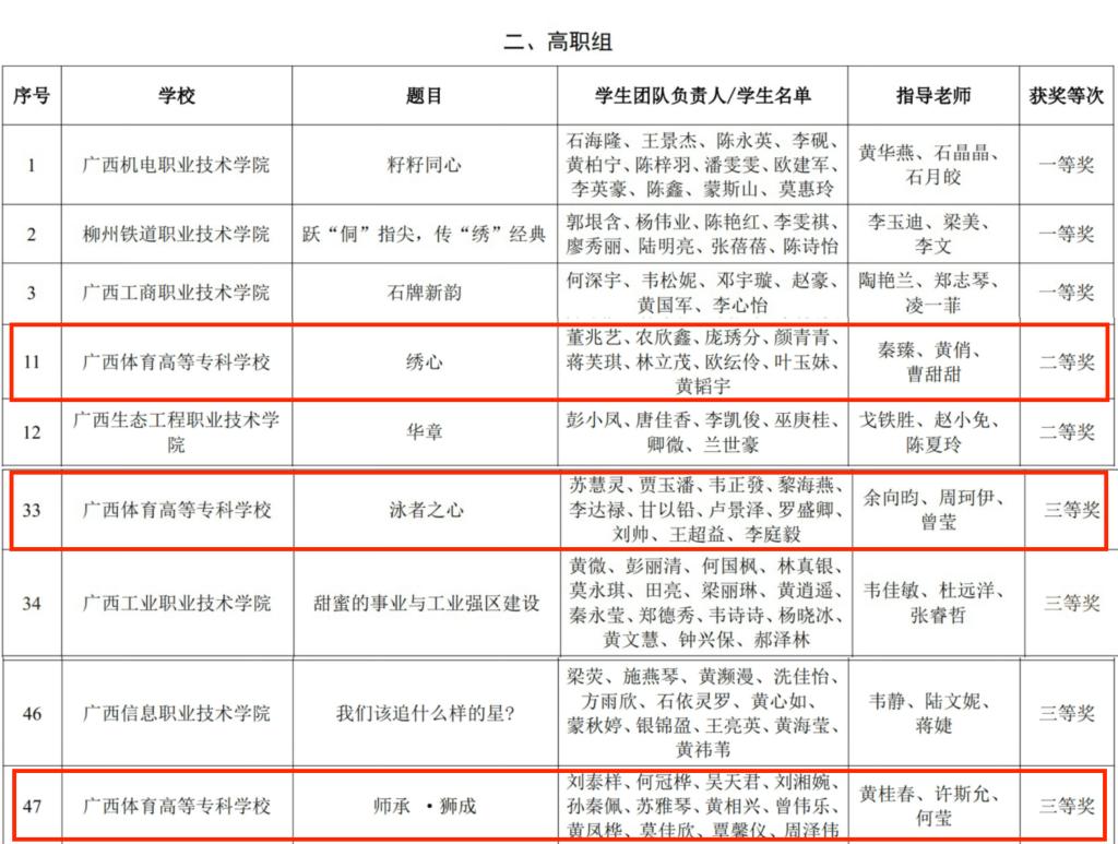 在2024年广西高校大学生讲思政课公开课展示活动中,爱体育电子官方网站邹如意、李华娟、李志雄老师指导的作品《培根铸魂推动文化繁荣 建设壮美广西》以及李红梅、李芋坪、麦文燕老师指导的作品《践行群众路线,助力建设健康广西》荣获三等奖。