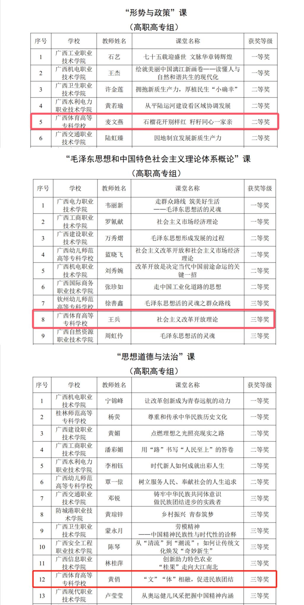 近日,自治区教育厅公布2024年广西高校思政课系列示范课堂评选活动获奖名单,爱体育电子官方网站5堂思政课堂在评选活动中获奖。