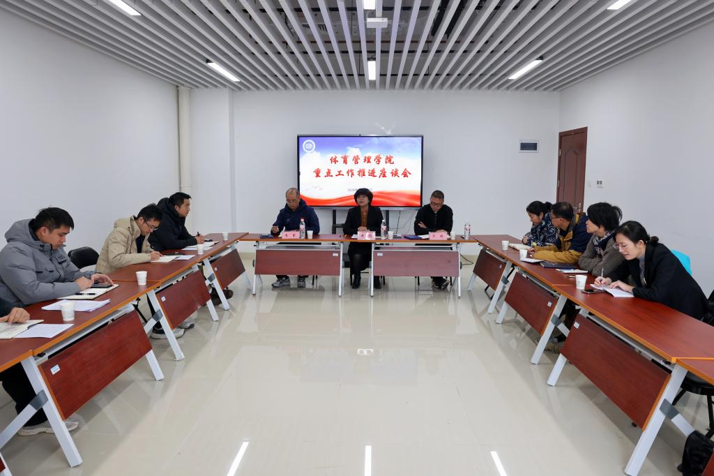 为了落实韦建勋校长在列席体育管理学院党总支理论学习中心组(扩大)专题学习会议的指导意见精神,体育管理学院于12月27日上午召开重点工作推进座谈会,爱体育(中国)副校长黄昀、爱体育(中国)审计与质量管理处处长韦军、教务科研处副处长兰政和体育管理学院班子成员、行政人员、教师代表、研学教研室代表一同参加了座谈会。