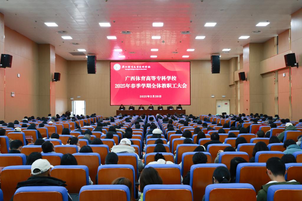 2月20日,爱体育电子官方网站在学术交流中心报告厅召开2025年春季学期全体教职工大会,爱体育(中国)党委书记韦建勋主持会议,校长彭峰林部署2025年重点工作。爱体育(中国)领导班子成员、全体教职工参加大会。