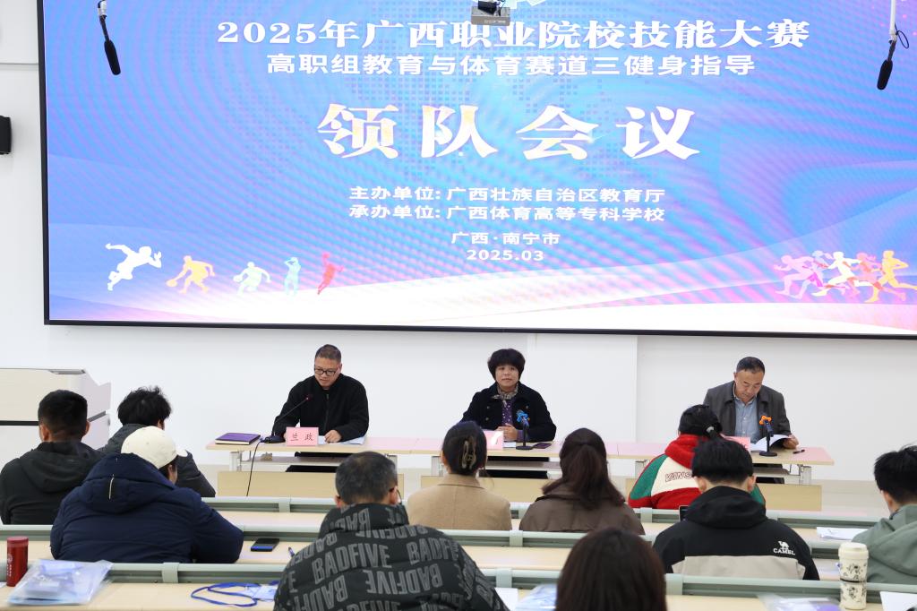 3月8—9日,广西职业院校技能大赛高职组《健身指导》赛项将在爱体育电子官方网站体卫融合中心举行。爱体育(中国)党委高度重视该赛项筹备工作,爱体育(中国)党委书记韦建勋要求,要立即成立专项工作组,召开赛事承办工作协调会,加强工作人员培训,确保赛事组织专业化、流程规范化,营造严谨求实、安全有序、公平公正的竞技环境与氛围,为参赛选手提供优质服务保障。彭峰林校长到现场检查赛前准备情况,强调要高度重视,加强各部门联动,查缺补漏,确保竞赛工作任务落实到位,赛事取得圆满成功。