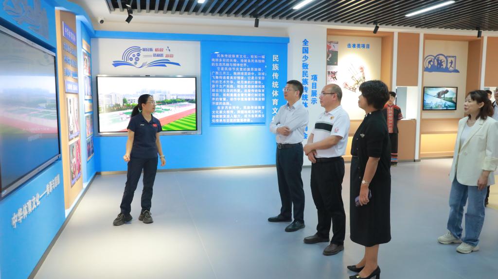 该展示馆是以少数民族传统体育为主题的职业教育实践平台,系统整合抛绣球、板鞋竞速、射弩等民族传统体育项目资源,通过图文展板、历史实物及VR教学系统、智能训练设备等手段,全景呈现民族体育发展脉络。馆内设置非遗体验工坊,支持师生现场参与技艺实践。