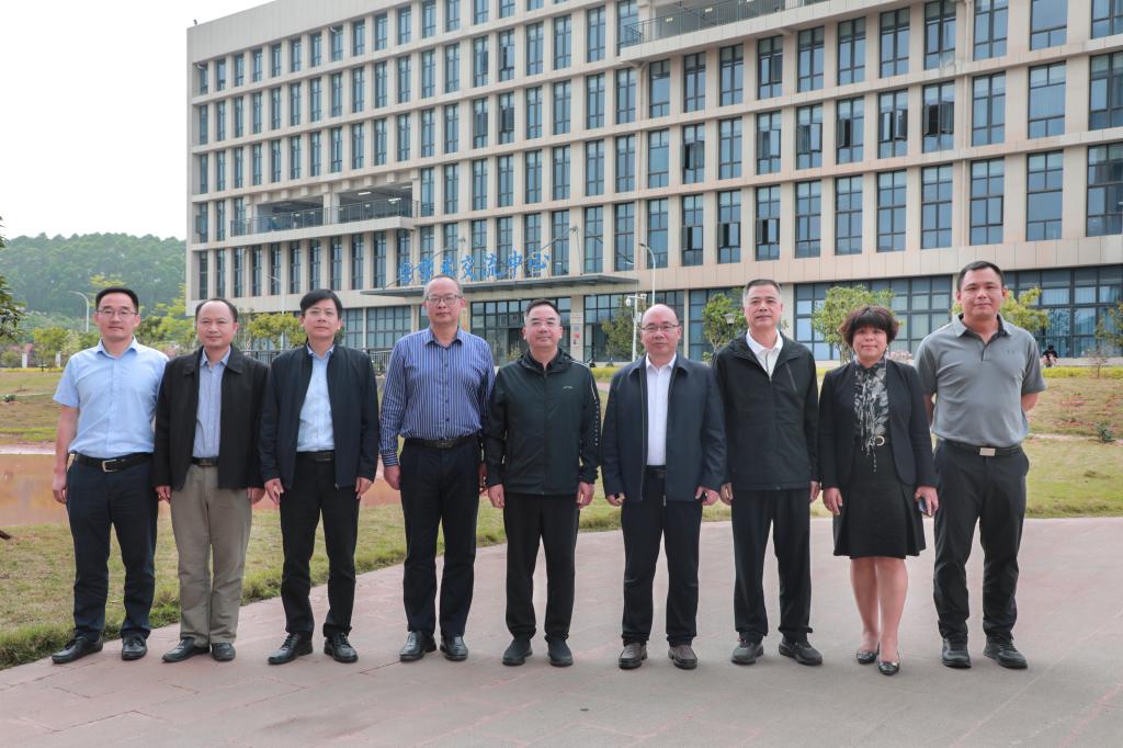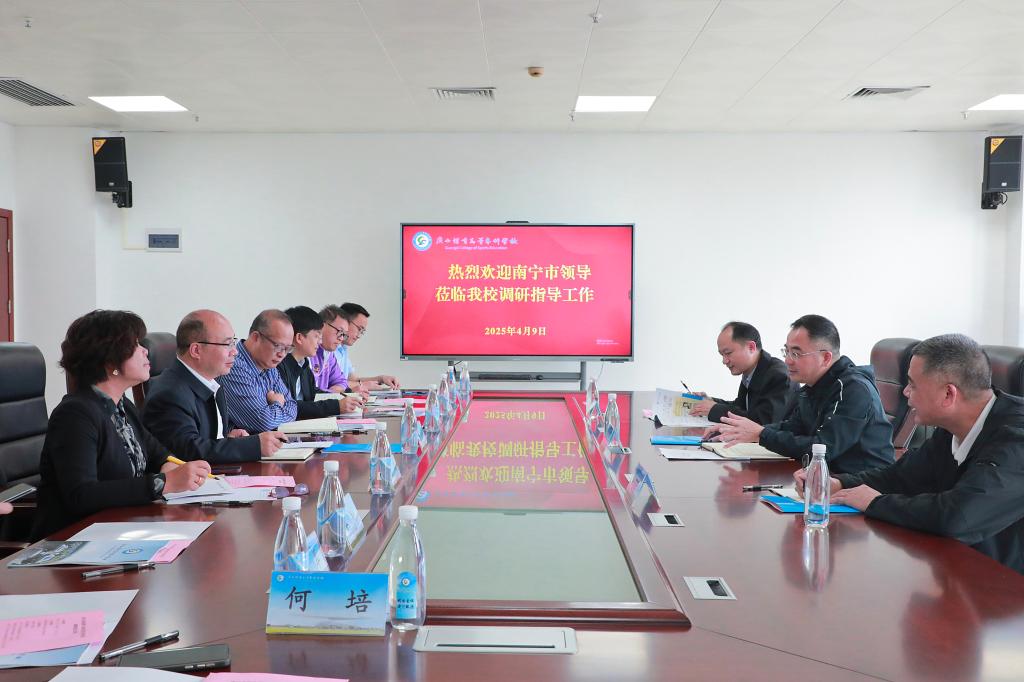 4月9日,南宁市政协副主席梁平江到爱体育电子官方网站相思湖校区调研。校党委书记韦建勋、校长彭峰林等校领导,以及相关部门负责同志陪同调研。