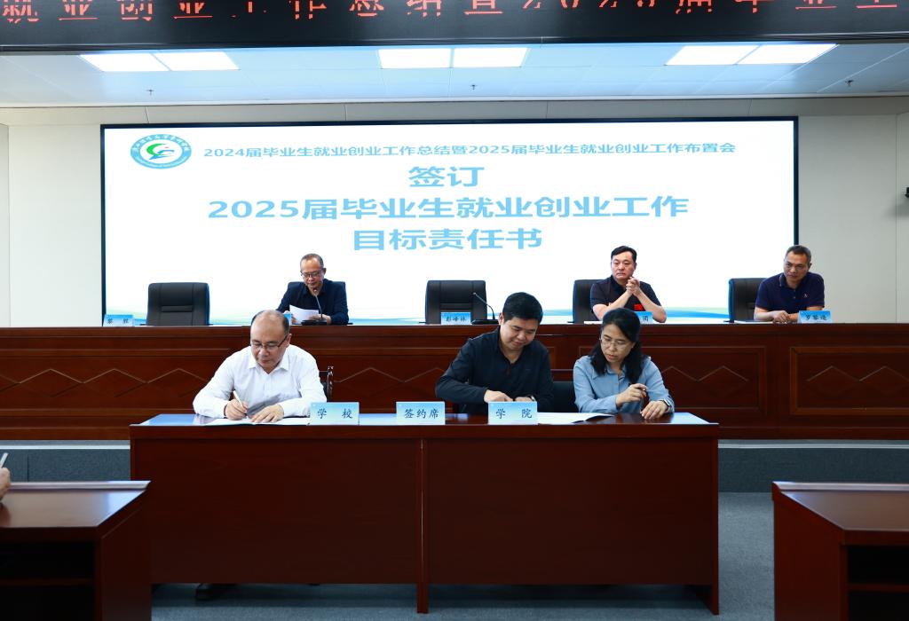 会上,彭峰林校长与各学院签订了2025届毕业生就业创业工作目标责任书。运动健康学院和体育管理学院作经验交流分享;学工与招生就业处作爱体育(中国)2024届毕业生就业创业工作总结和2025届毕业生就业创业工作进展情况汇报。